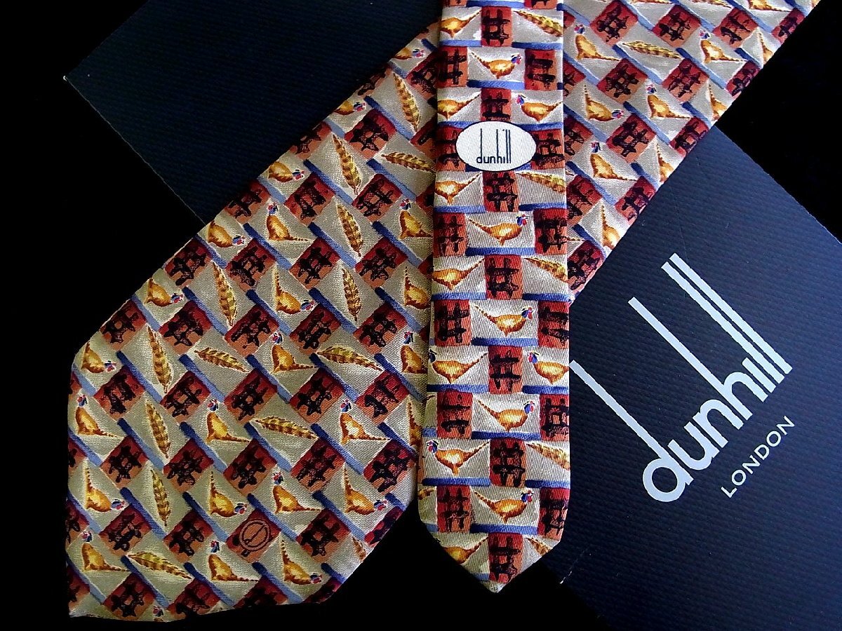 ★今週の特売★7272★高級ブランド【キャラ柄】★ダンヒル【鳥 雉 キジ 羽 dロゴ 柄】ネクタイ★