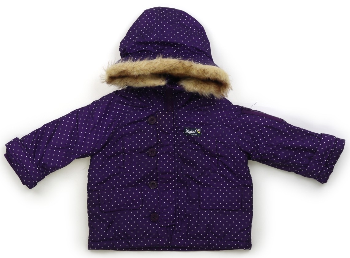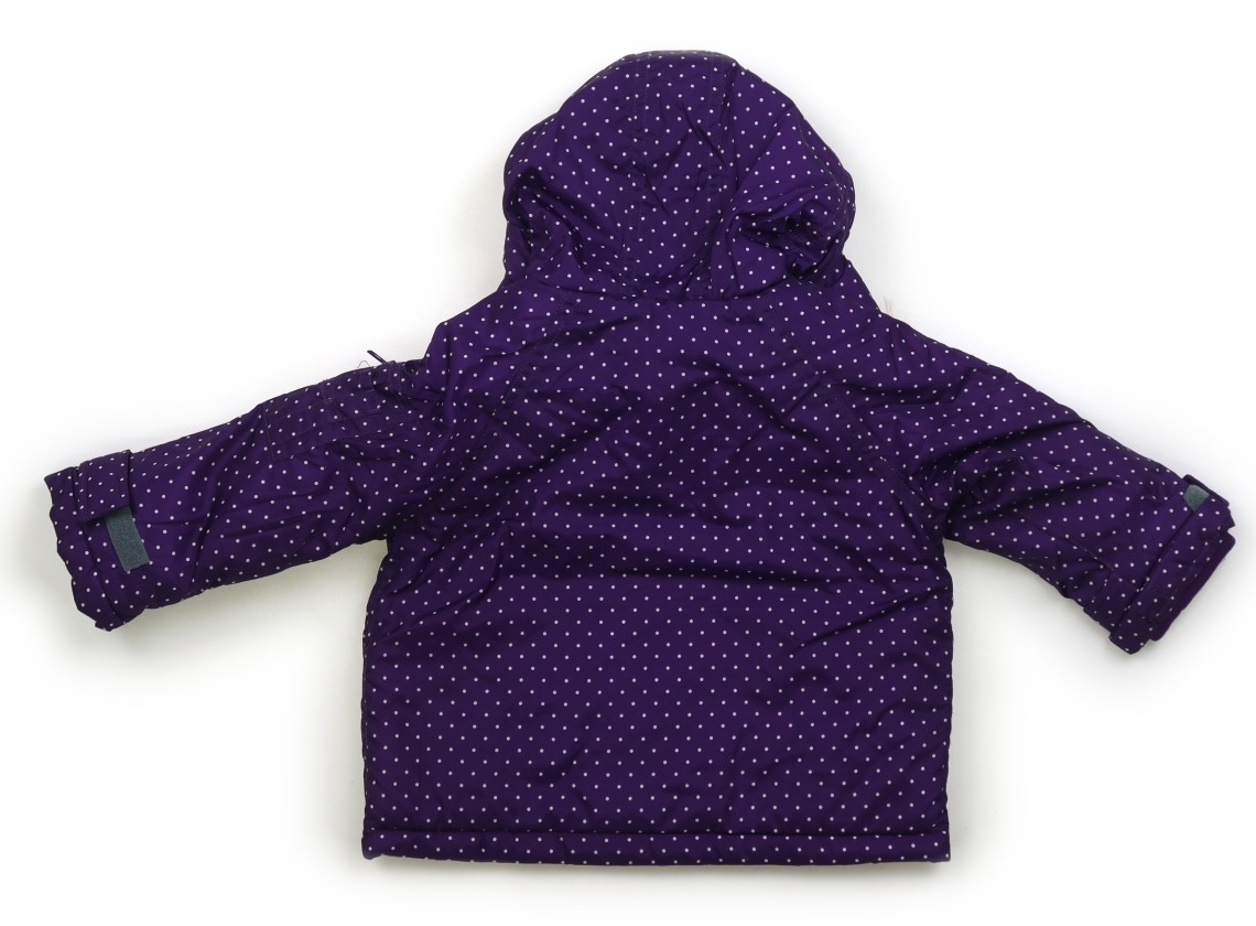 ポリエステル素材。中綿入り。ファスナー・ボタン開き。フードは縫い付けです。実際のサイズ表記は、12M。薄い汚れや引っ掛け傷が複数見られます。