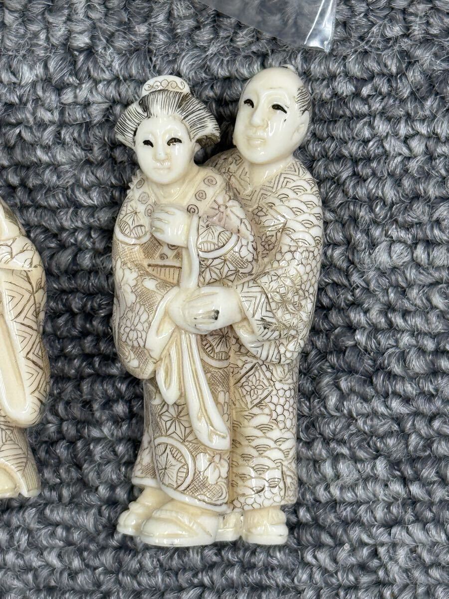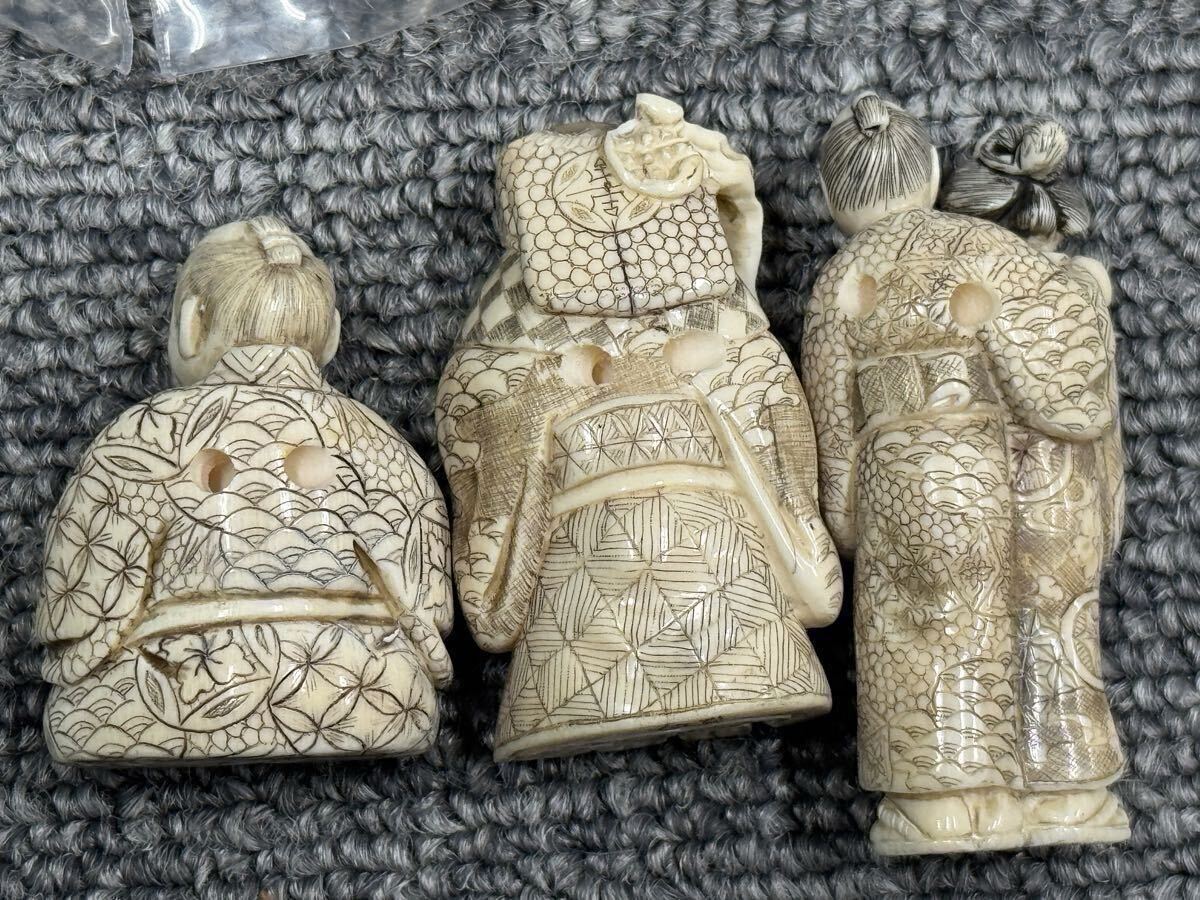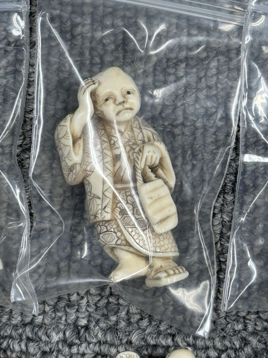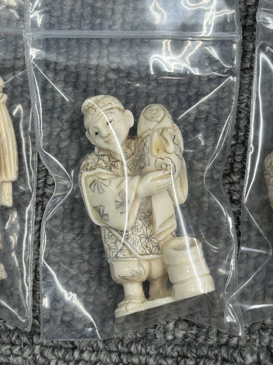 【1円スタート】 七福神 天然素材 彫刻 細密彫刻 時代物 置物 仏教美術 重量 約105g 約30mm×50mm 7点 まとめ売り 根付 右竜 吉田 道川