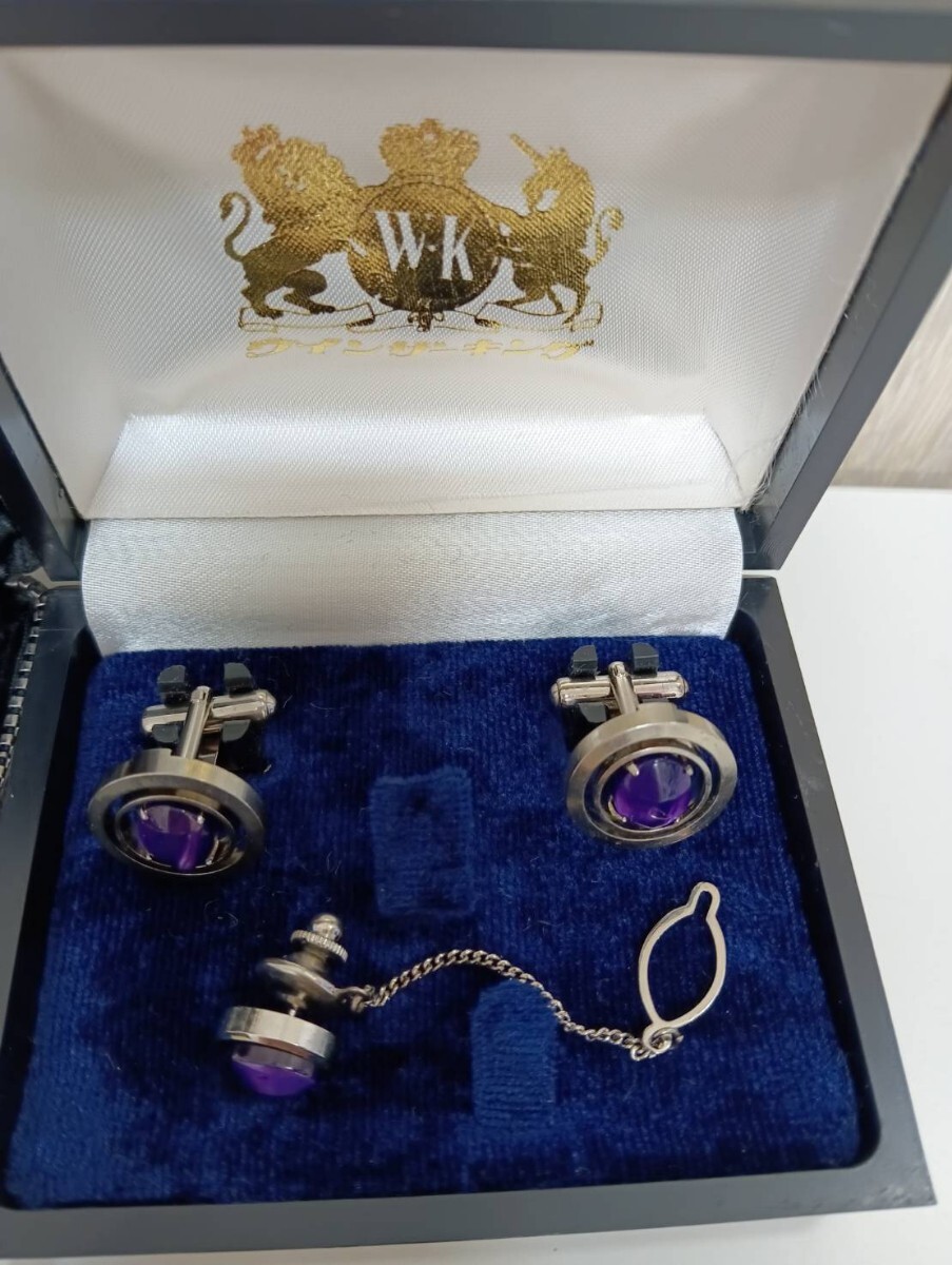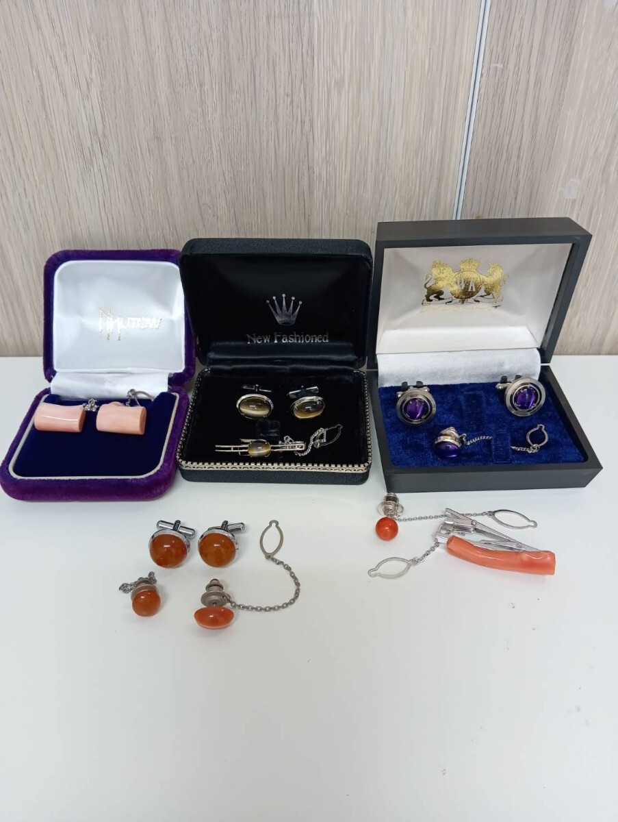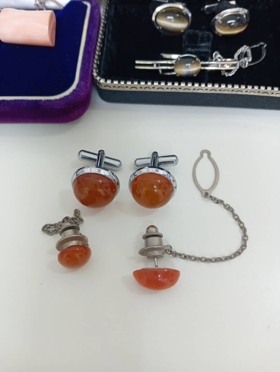 【中古品】カフスボタン ネクタイピン セット 昭和レトロ カフス タイピン 現状品