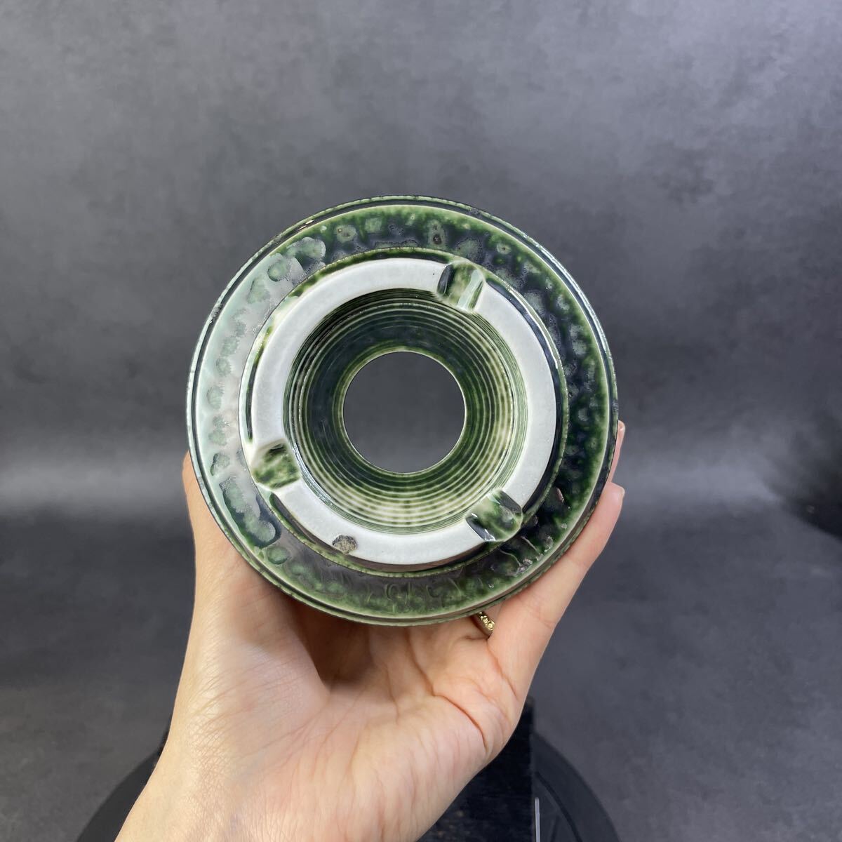 上部の乳白釉が柔らかく流れ、中央の灰藍釉は金属のような光を帯び、