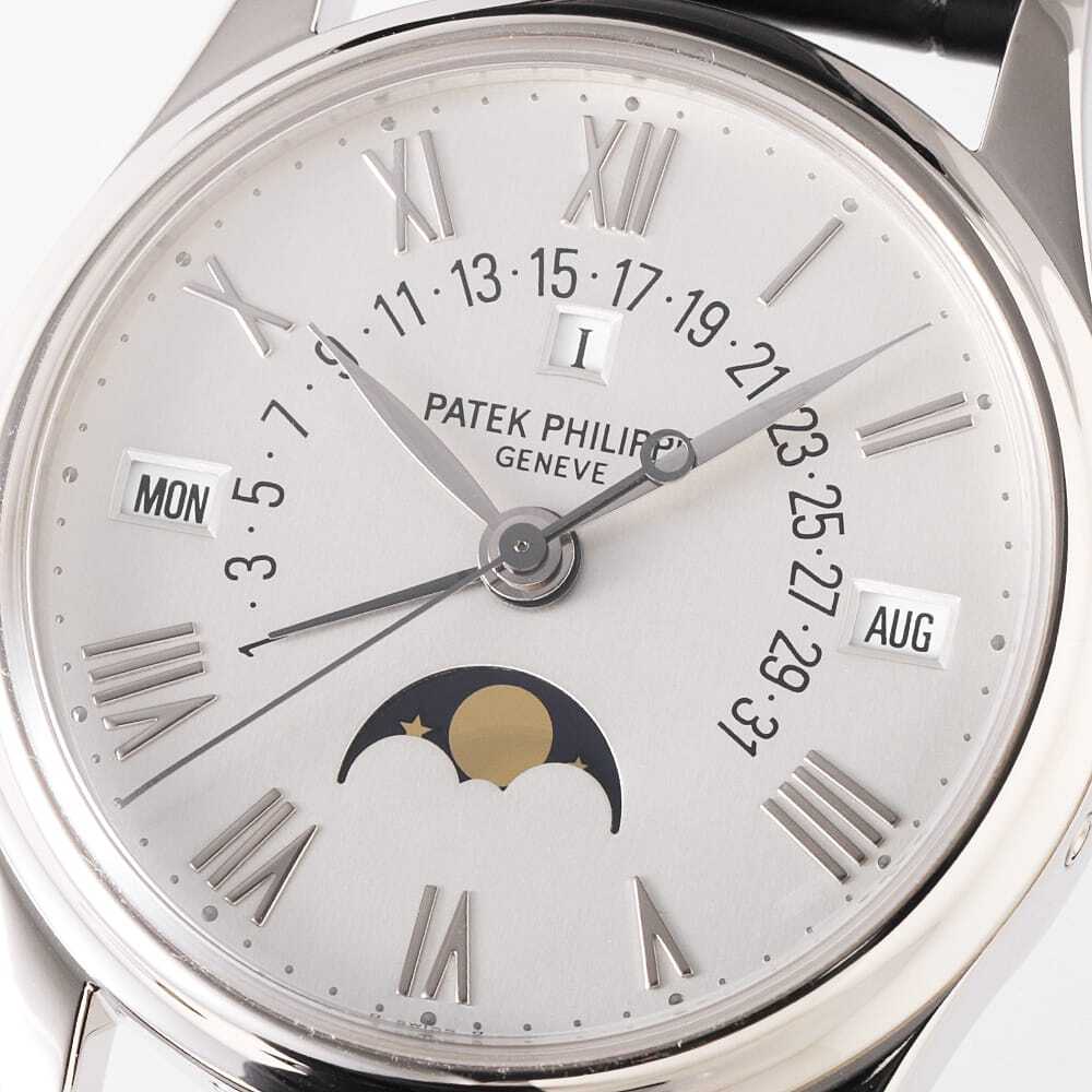 | モデル情報 | パテックフィリップを代表するコンプリケーションモデル、"パーペチュアルカレンダー"。ホワイトゴールドケースにシルバーダイアルが洗練された上品さを漂わせます。ムーンフェイズ、レトログラードも搭載した素晴らしい1本です。 |