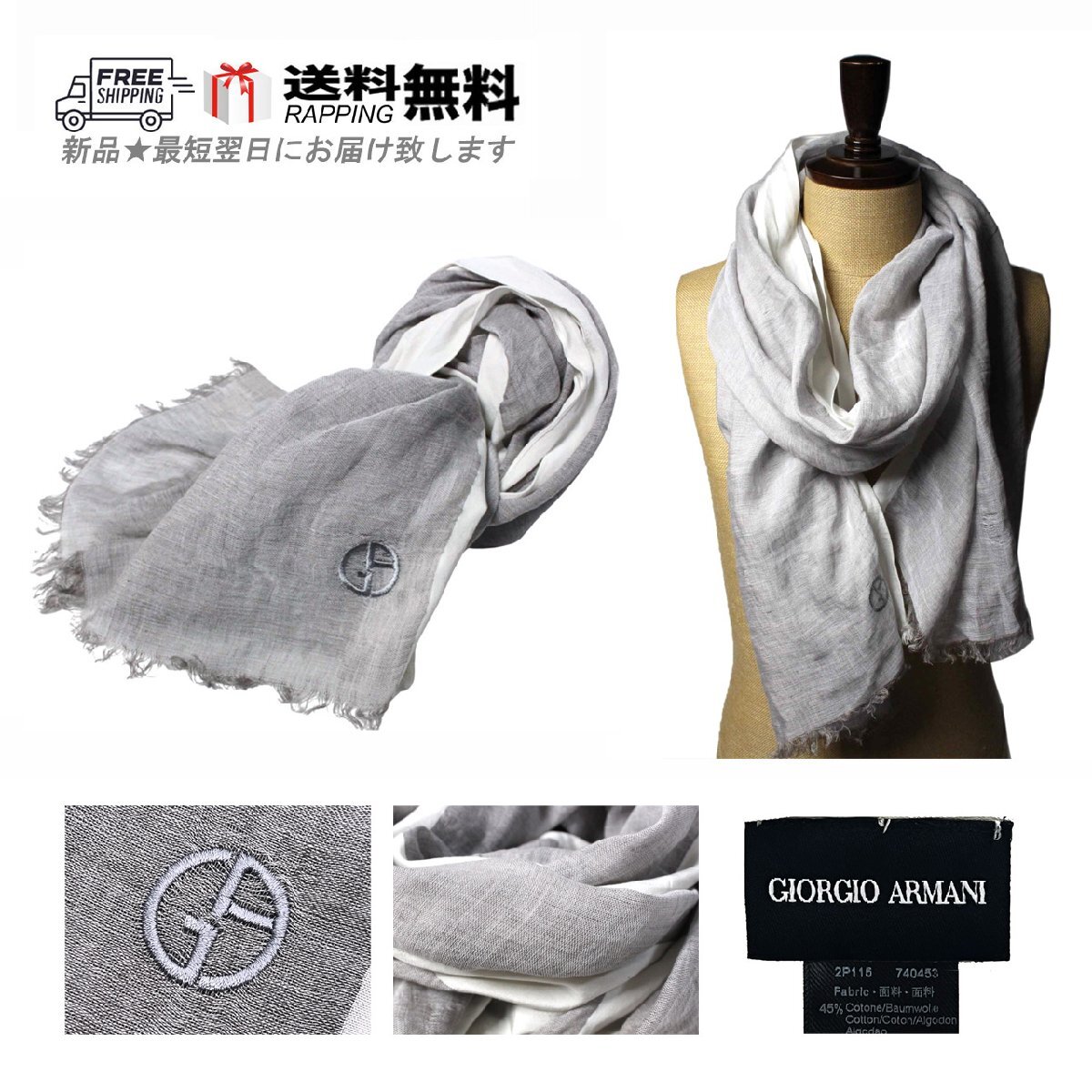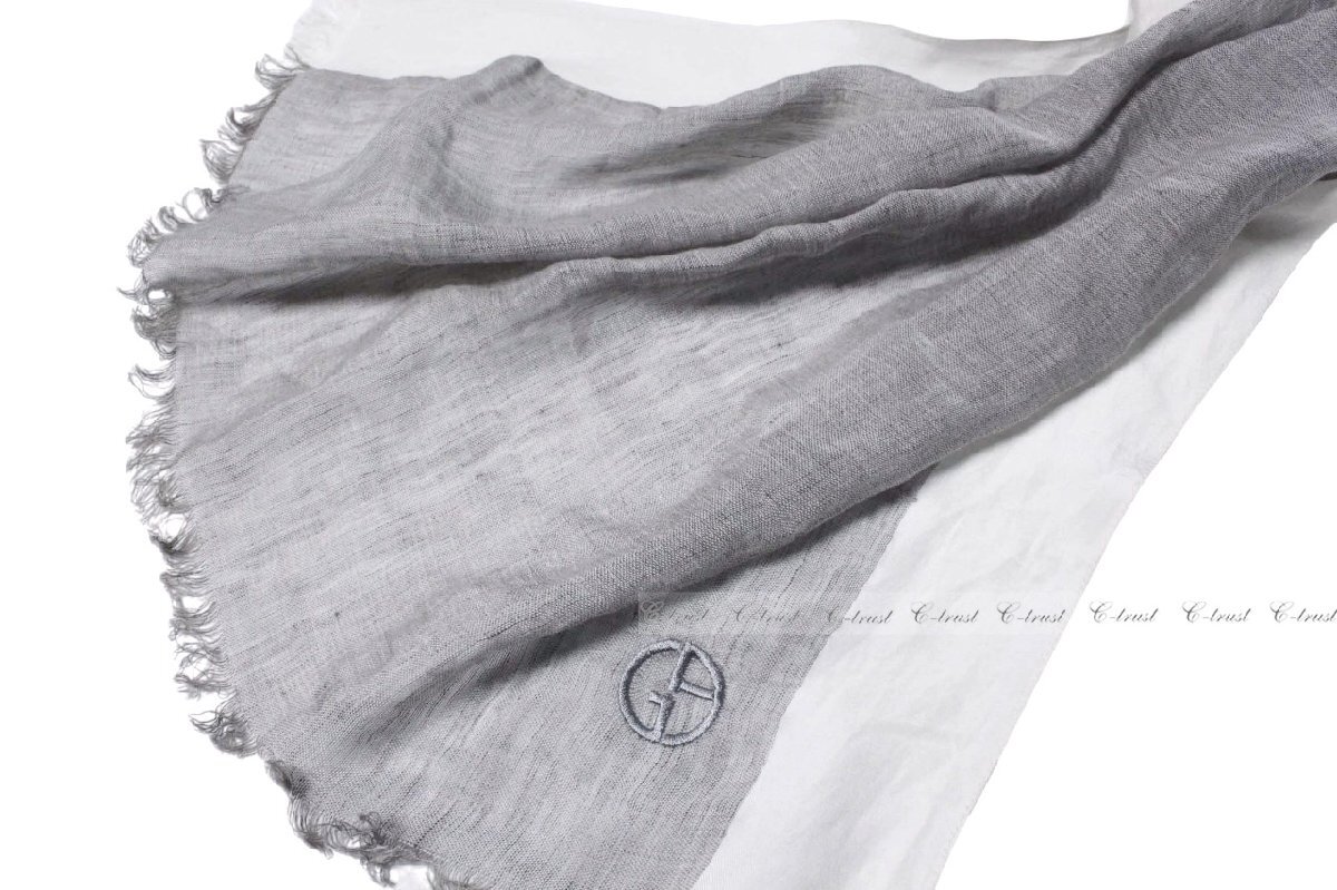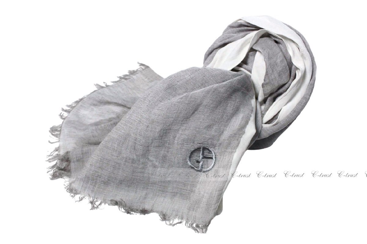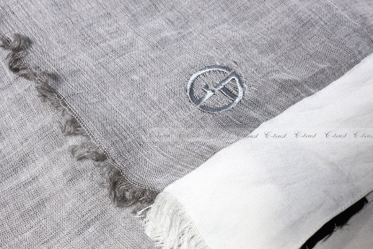 A457.. GIORGIO ARMANI ジョルジオ アルマーニ ストール バイカラー ロゴ イタリア製 ★ ライトグレー