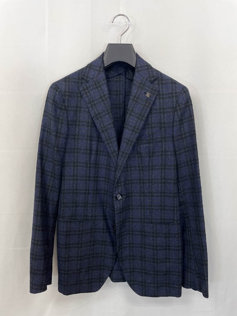 超美品【TAGLIATORE タリアトーレ】1SMC22K Super110’S 2ボタン チェック柄 アンコンジャケット(メンズ)44/R グレー×紺系 伊製◇17MJ0773