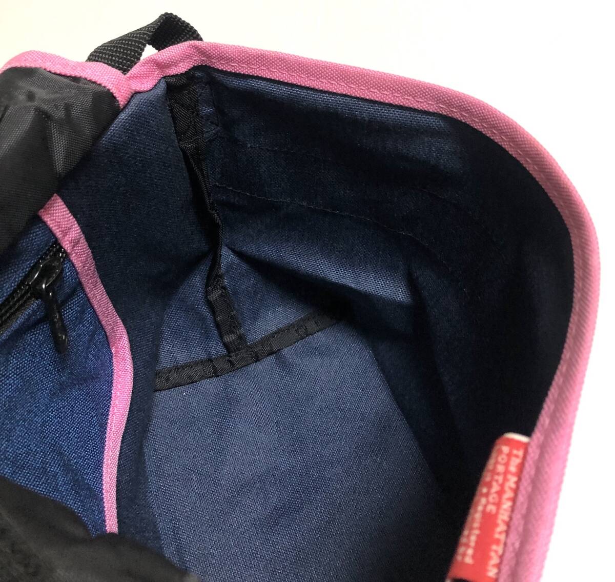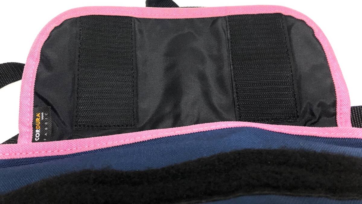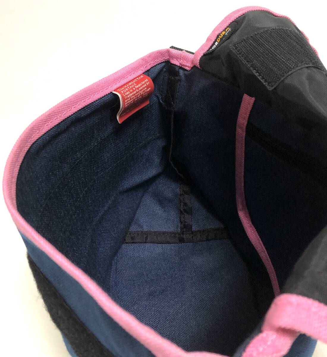 ネイビーボディにピンクのパイピングが施されたデザインです。