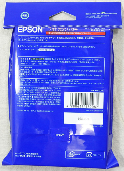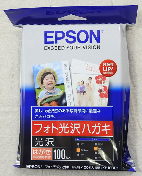 | エプソン EPSON フォト光沢ハガキ 100枚 KH100PK【未開封】の出品です。 こちらは譲り受け品のため、詳細については不明です。 美しい光沢感のある写真印刷に最適な光沢ハガキです。 | |||