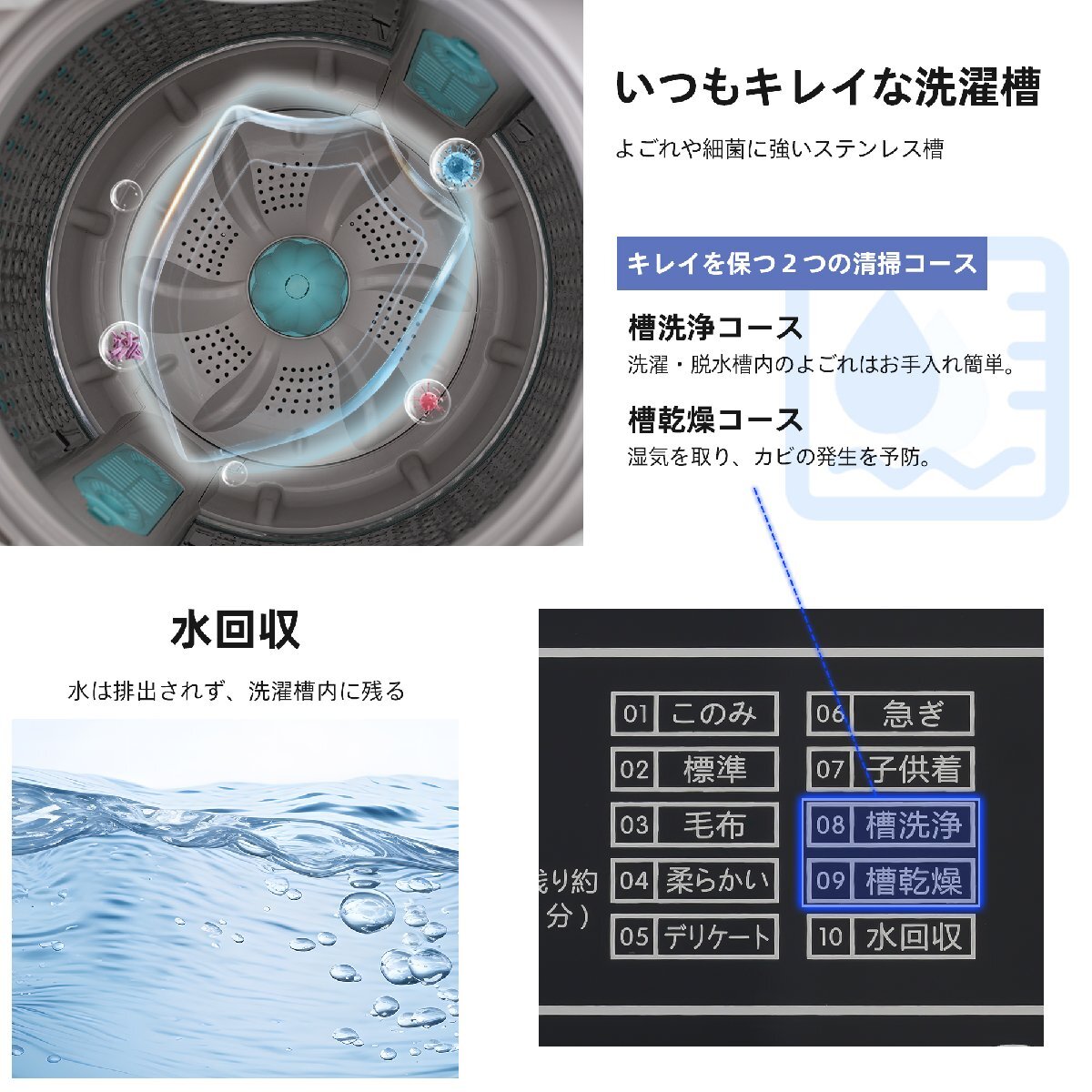 • 【いつもキレイな洗濯】上部には汚れに強いステンレス槽。 キレイを保つための2つのコースがあります。槽洗浄コース 洗濯・脱水槽内の汚れを簡単に取り除きます。槽乾燥コース - 湿気を取り除き、黒カビの発生を抑えます。