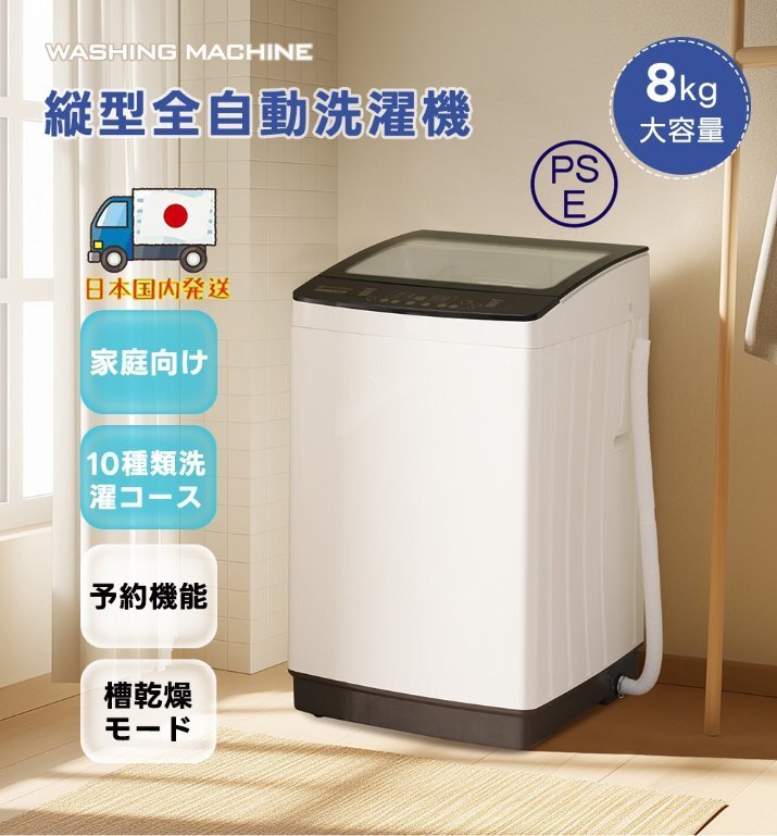 【国内発送】全自動洗濯機 8kg 大容量 縦型 上開き キレイ タイマー コンパクト 一人暮らし 家庭用 水位調整 小型洗濯機 節電 布団