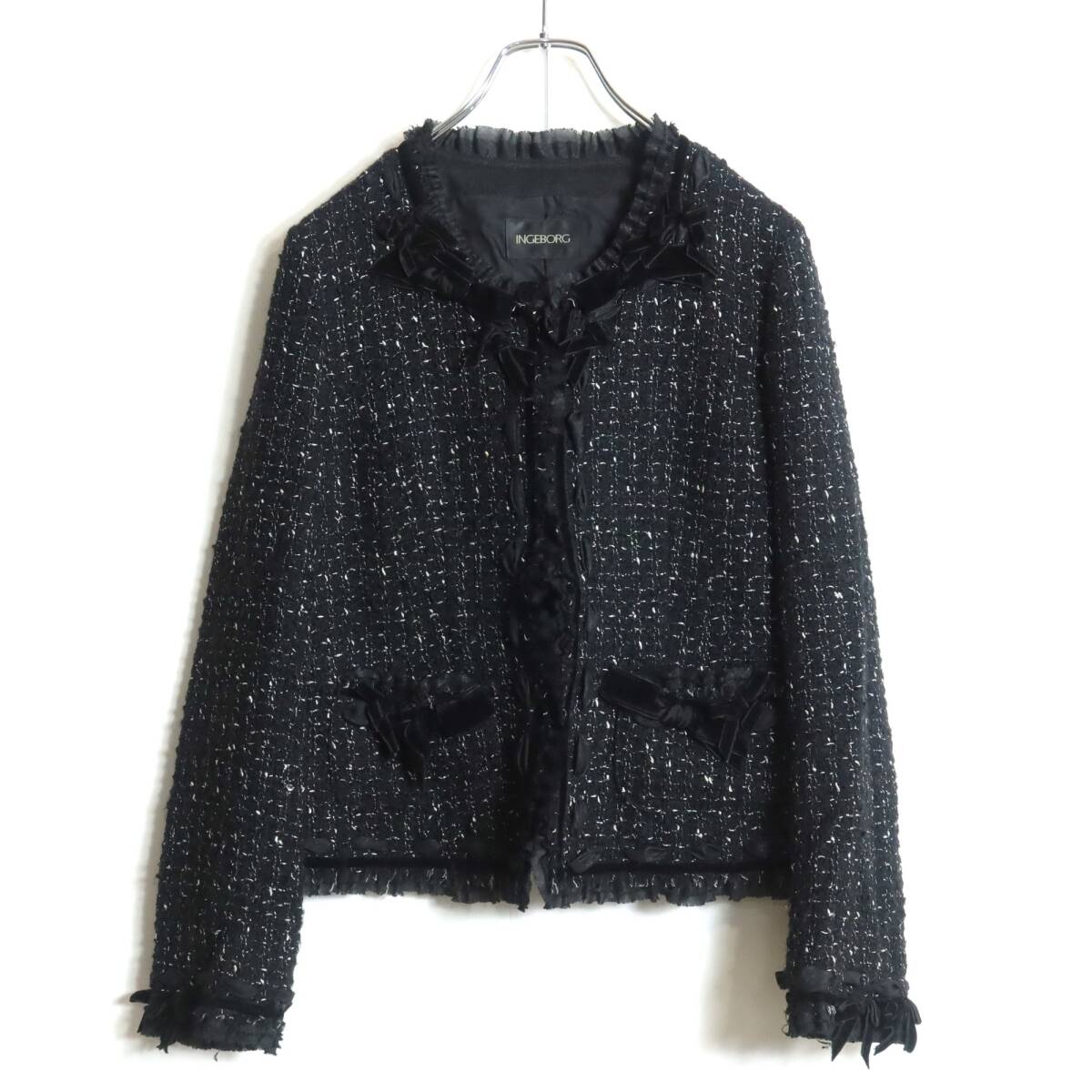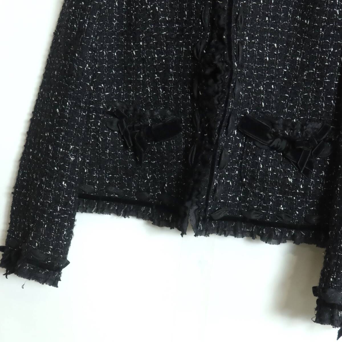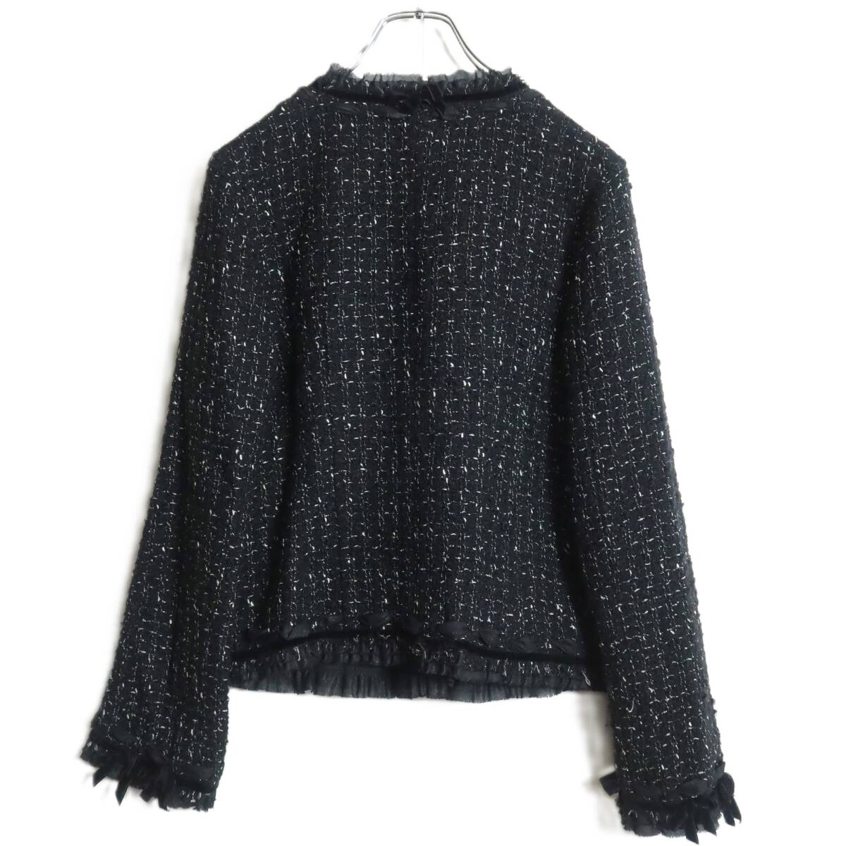 | 商品説明 | 【実寸約】肩幅40袖丈61バスト94着丈50(cm) 【サイズ表記】 11 【素材】 毛65アクリル27ナイロン4レーヨン2ポリエステル1指定外繊維(和紙)1% 【状態】使用感少なめの美品 【デザイン】ブラック系 ツイードの長袖ノーカラージャケットです。 フロントにカギホック3か所あり 厚手/織り柄・ベロアのリボン&テープ飾り付き ポケットあり/裏地あり |