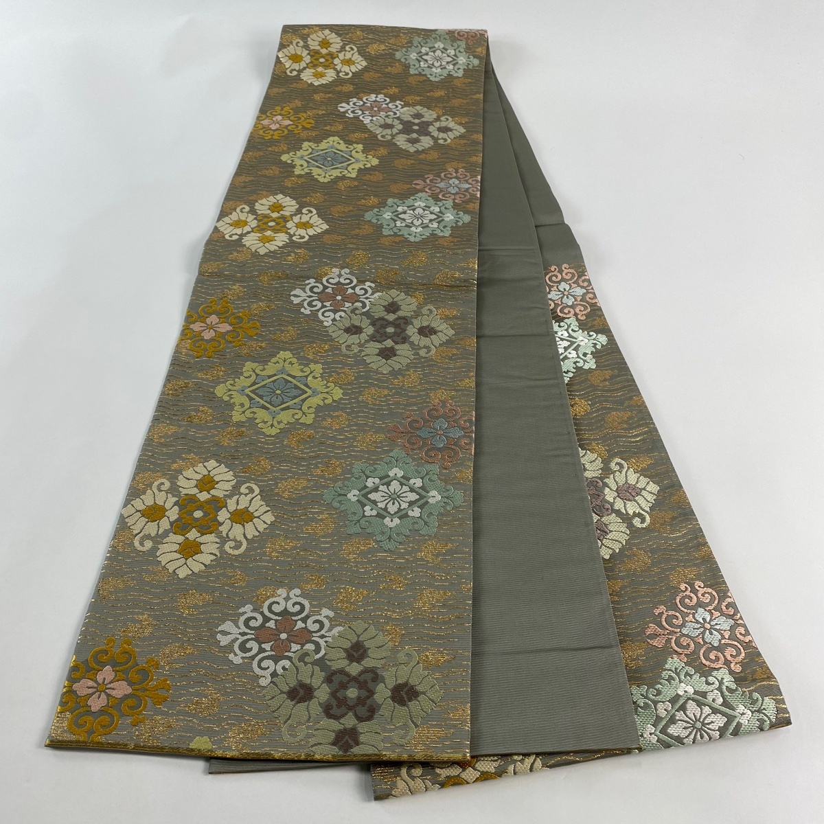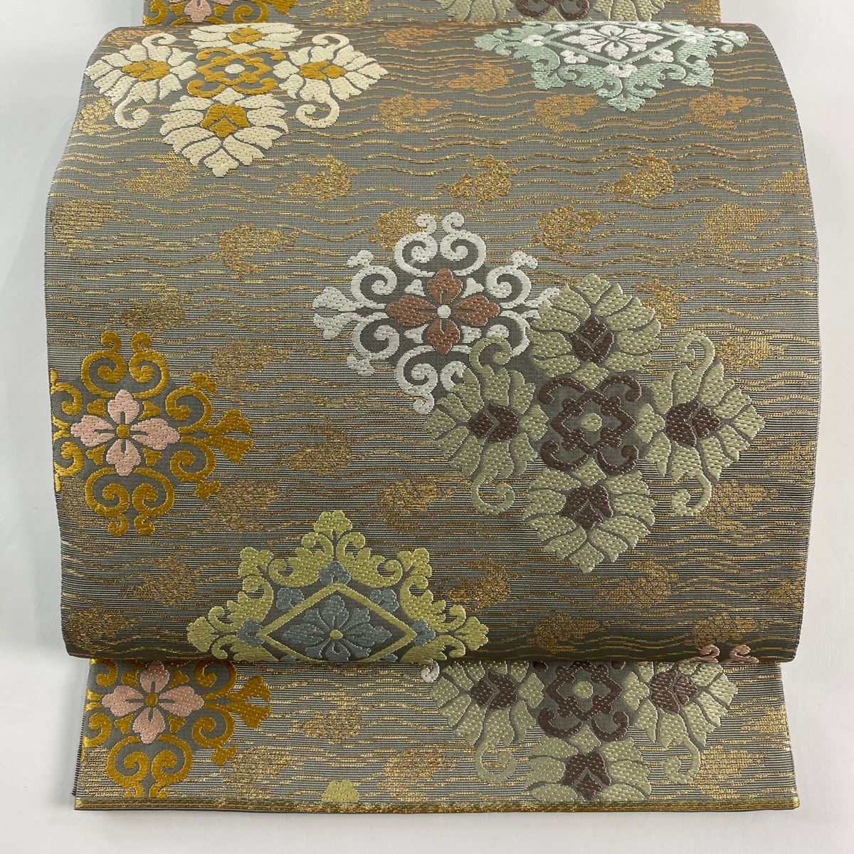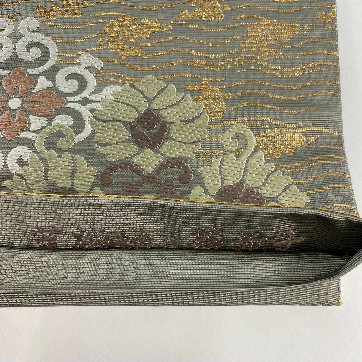 | 袋帯 美品 名品 花菱 荒磯 箔 灰緑 六通 正絹 【中古】 |