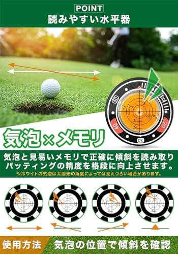 グリーンの傾斜、感覚だけで読んでいませんか?Arena Leoのゴルフマーカーは、水平器付きの2in1。置いた瞬間、気泡と見やすいメモリで傾斜が一目瞭然。パッティングの精度がグッと上がります。