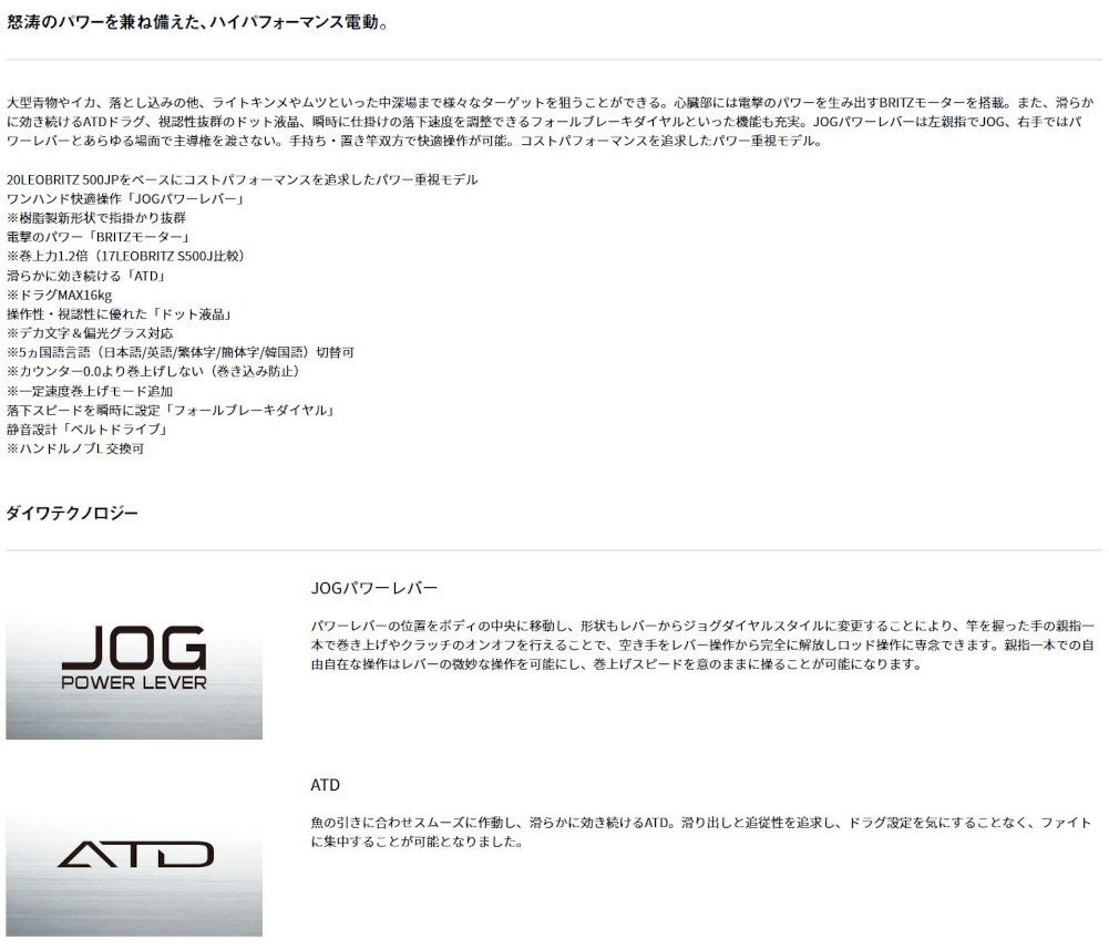 | 商品名 | 新品 ダイワ 23レオブリッツ S500JP 釣り具 LEOBRITZ 電動リール | ||||