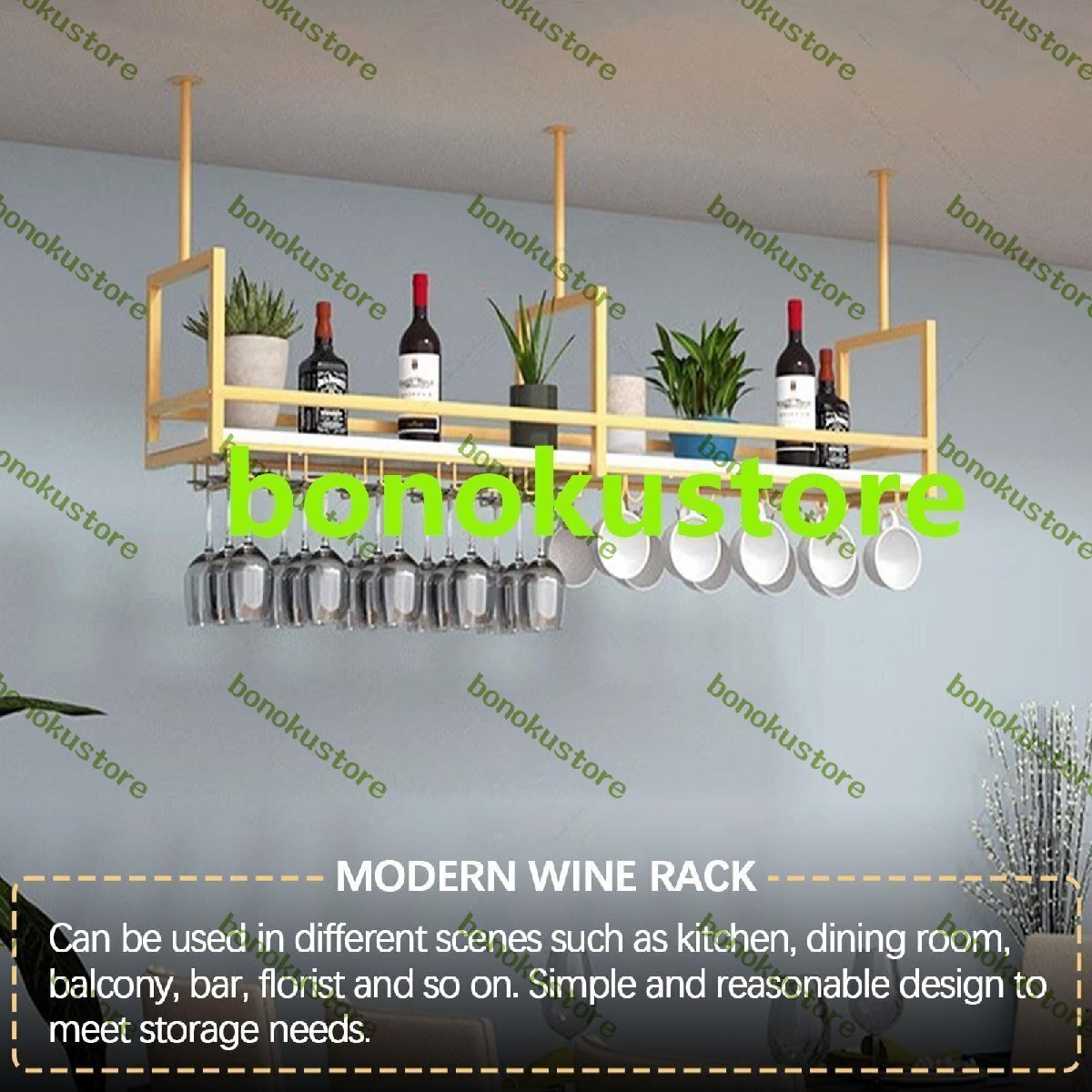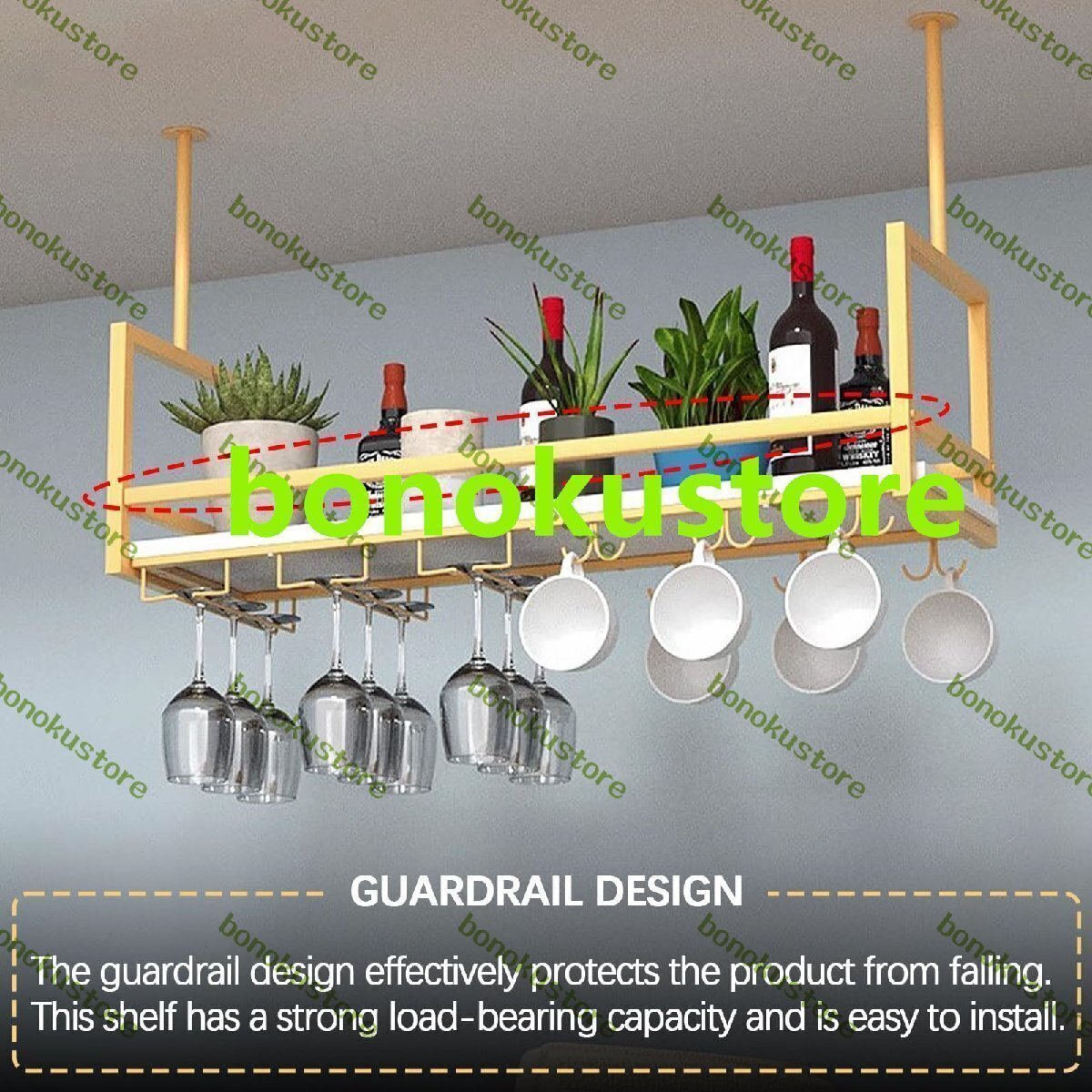 商品説明 ワインラックゴールドワインラック、天井吊り下げ式ワイングラスラック、収納用、ワインホルダー、ステムウェアラック、フローティングシェルフ、壁掛け式ワインボトルラック、バー/コーヒー/キッチン/リビングルーム、ホームデコレーション用 (