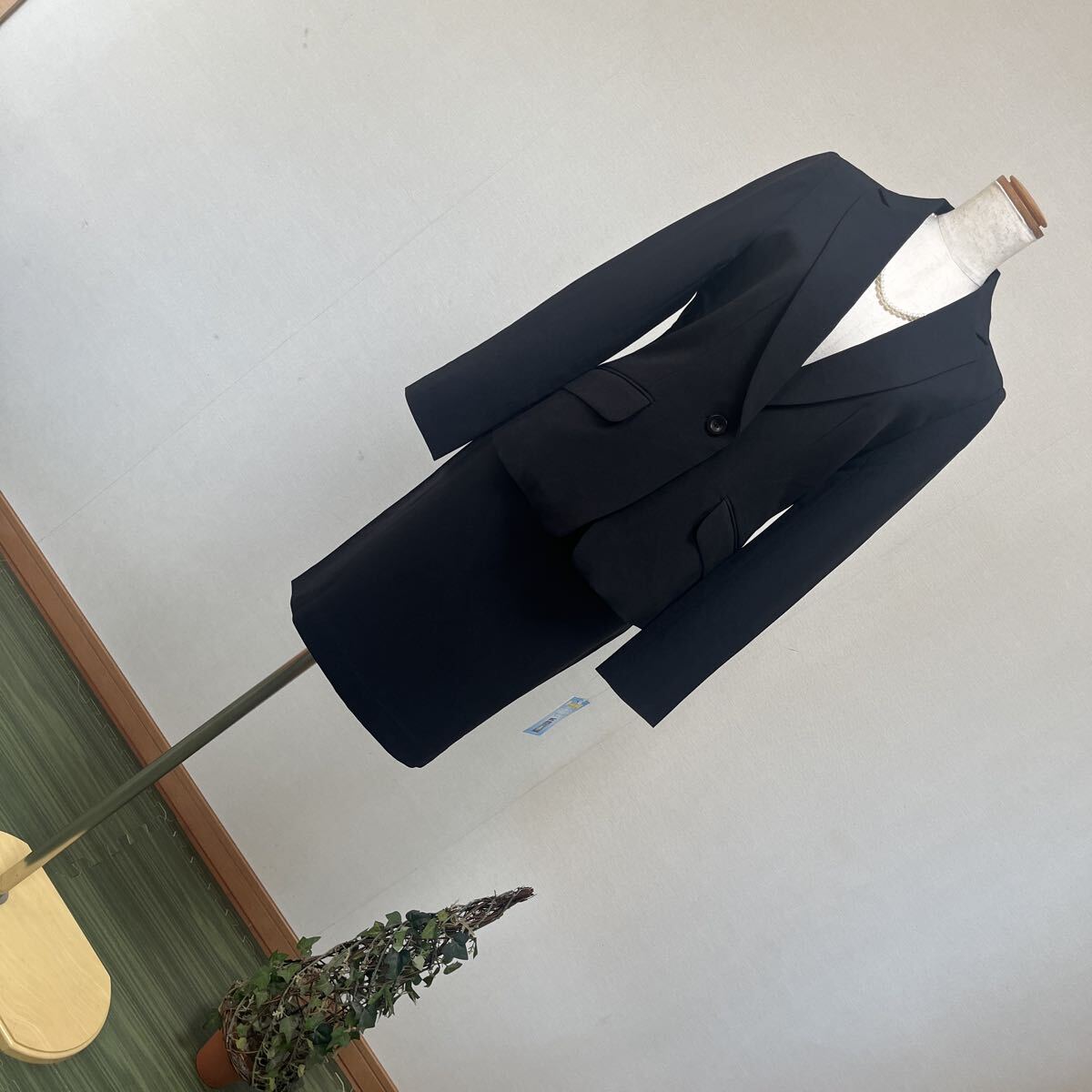 7-9新品 ブラックフォーマルスーツ セットアップジャケット+タイトスカート ウォッシャブルビジネスオフィススーツ黒2点セット9号 M