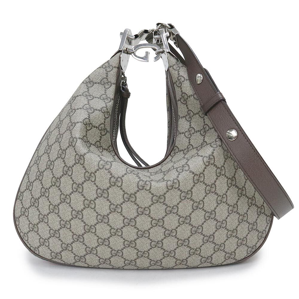 (未使用 展示品)グッチ GUCCI アタッシェ ミディアム ショルダーバッグ GGスプリームキャンバス レザー ベージュ ブラウン 702823