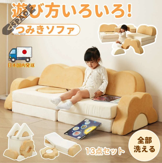 • ◎01 【遊び方いろいろ!つみきソファ全部洗える 13点セット】組み合わせ自由自在ソファから大変身!遊んで、くつろいで、お昼寝まで。これひとつで、おうち時間がもっと楽しく。