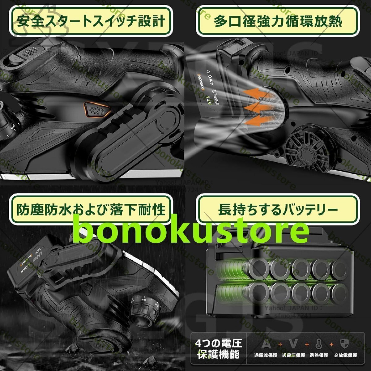 商品説明 商品説明 【商品詳細】★状態:新品未使用【充電式電気カンナ 】:刃幅幅60mmで最大切削深さ 0.8mm。切込深さ調節。無負荷速度: 13000R/MIN。 商品のサイズ(27*13cm)小さくて軽く、持ち運びが簡単で、長期間使用しても疲れません。【精密鋼両刃&高精度削り調商