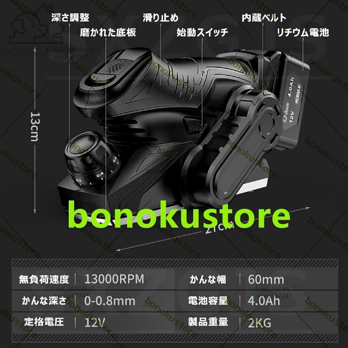 商品説明 商品説明 【商品詳細】★状態:新品未使用【充電式電気カンナ 】:刃幅幅60mmで最大切削深さ 0.8mm。切込深さ調節。無負荷速度: 13000R/MIN。 商品のサイズ(27*13cm)小さくて軽く、持ち運びが簡単で、長期間使用しても疲れません。【精密鋼両刃&高精度削り調
