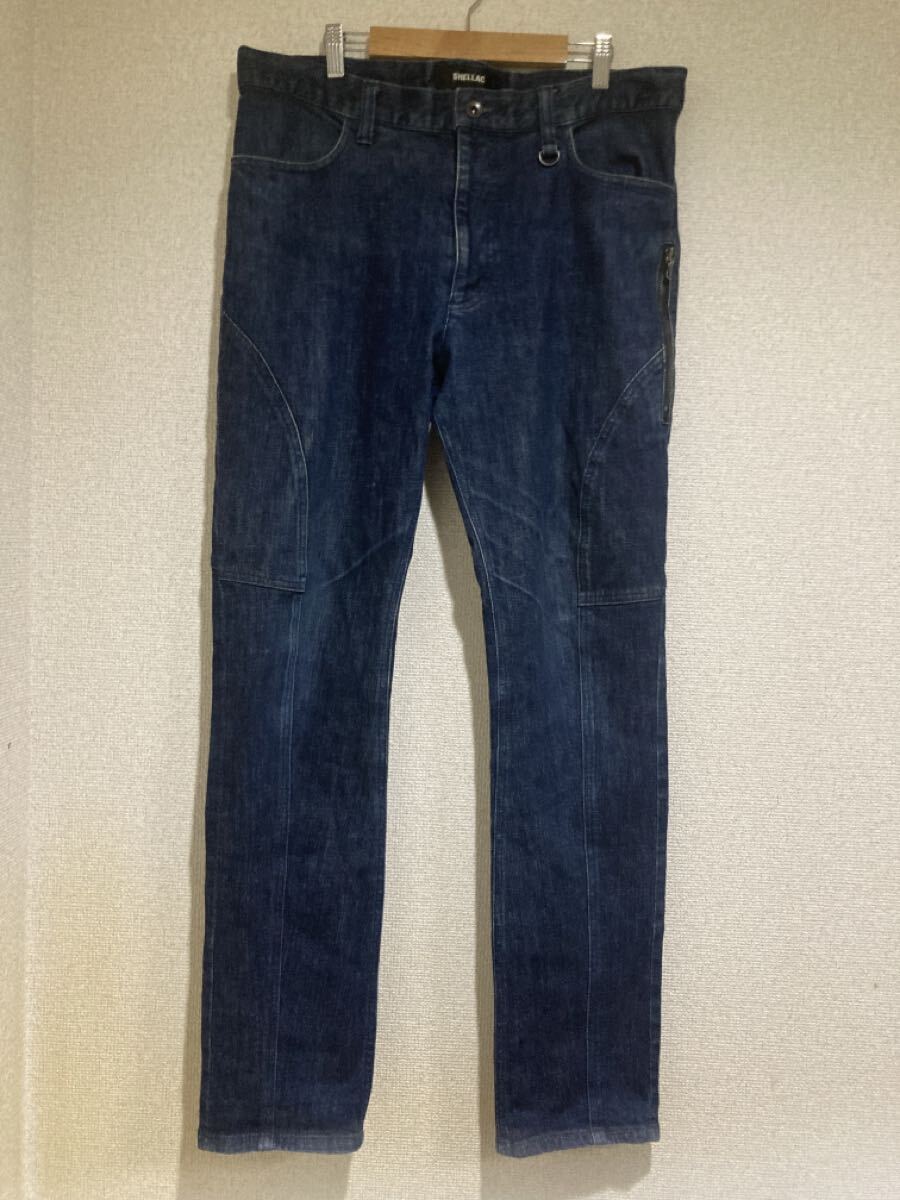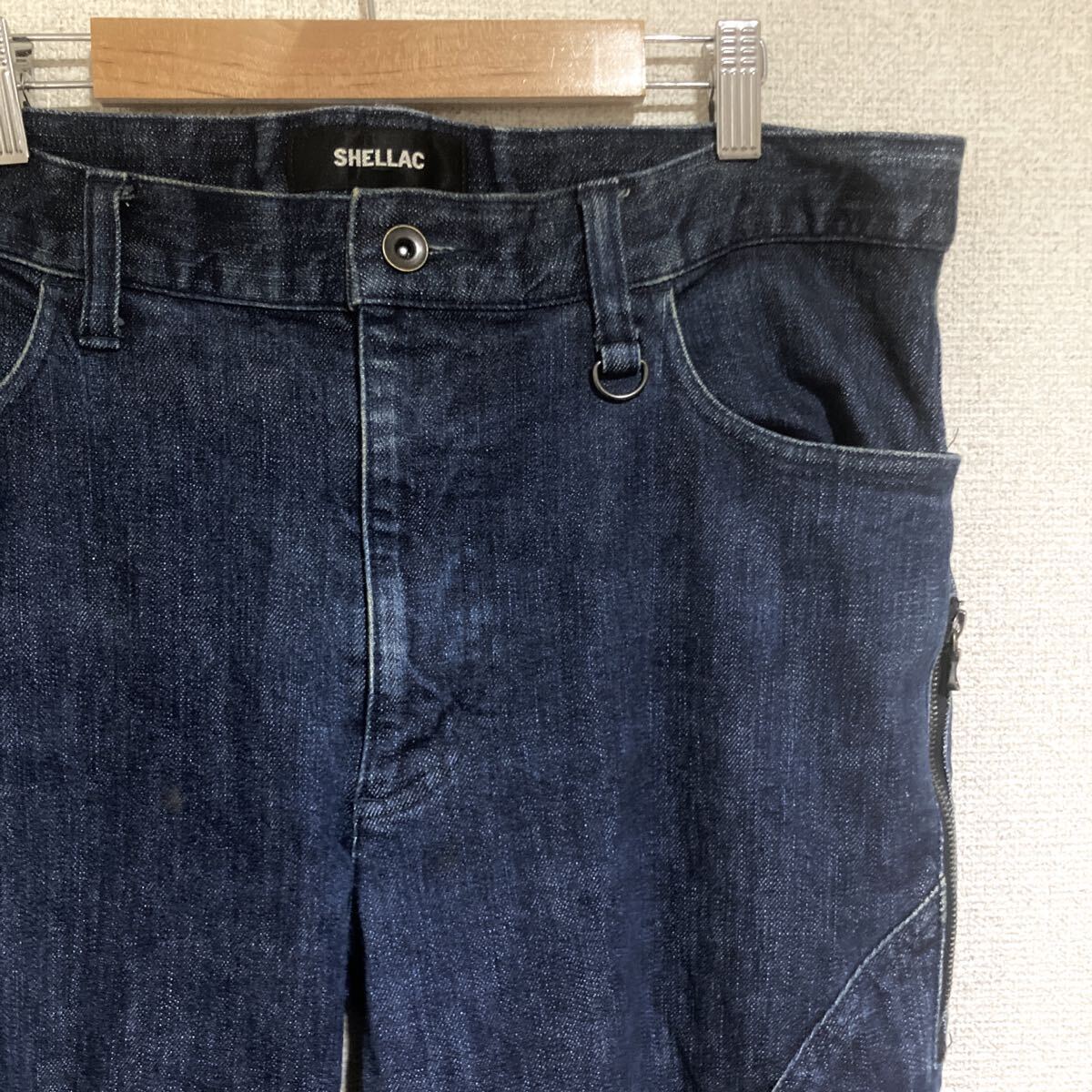 シェラック SHELLAC デニム ジーンズ サイズ48 ワイドパンツ ルーズシルエット ストレッチ インディゴ