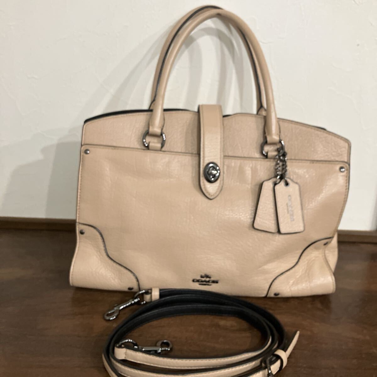 COACH コーチバッグ 2WAY 斜め掛け ショルダーバッグ ハンドバッグ レザー ベージュ ブラック コーチ バッグ