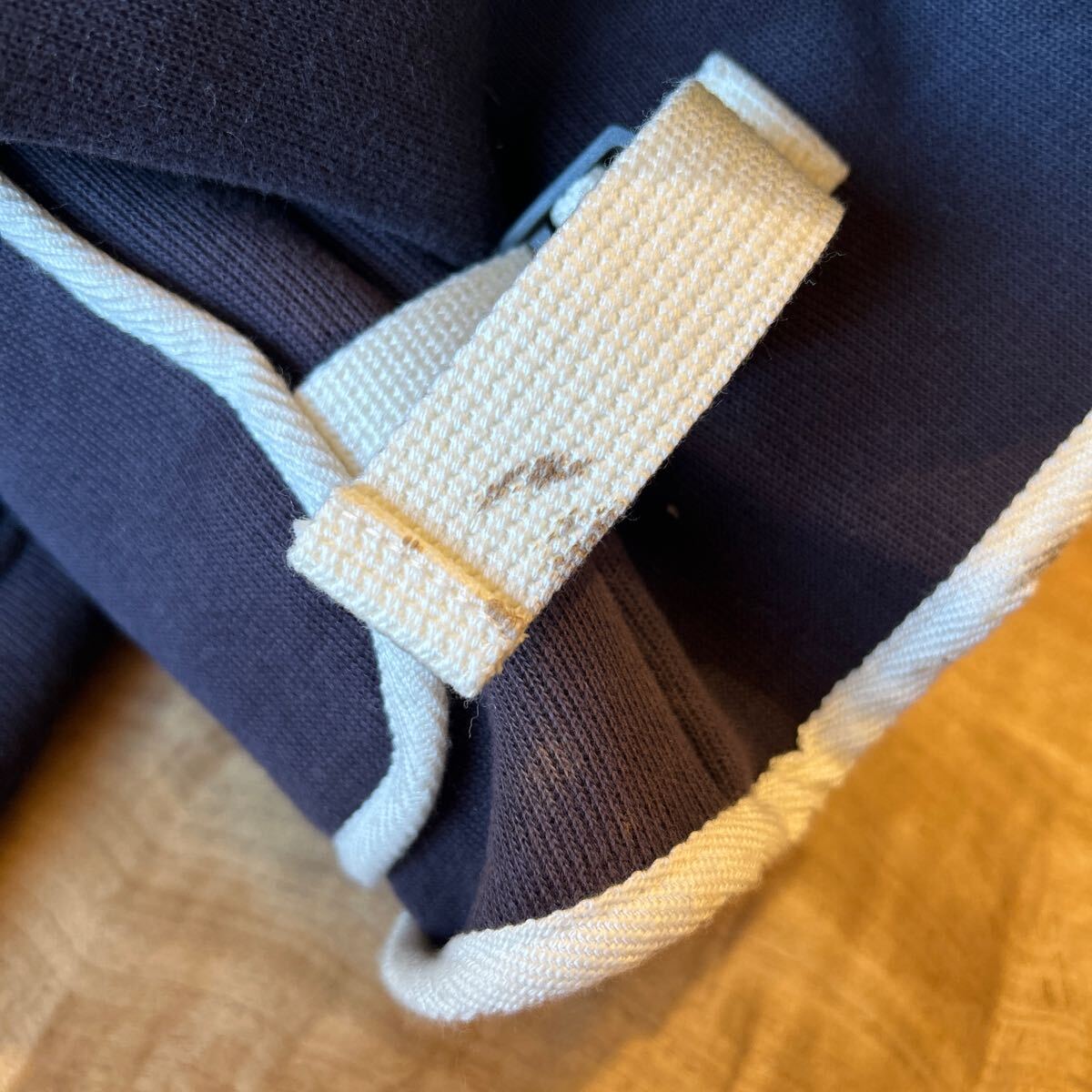 身頃や袖に色褪せ、白のテープ部分に汚れがあります。