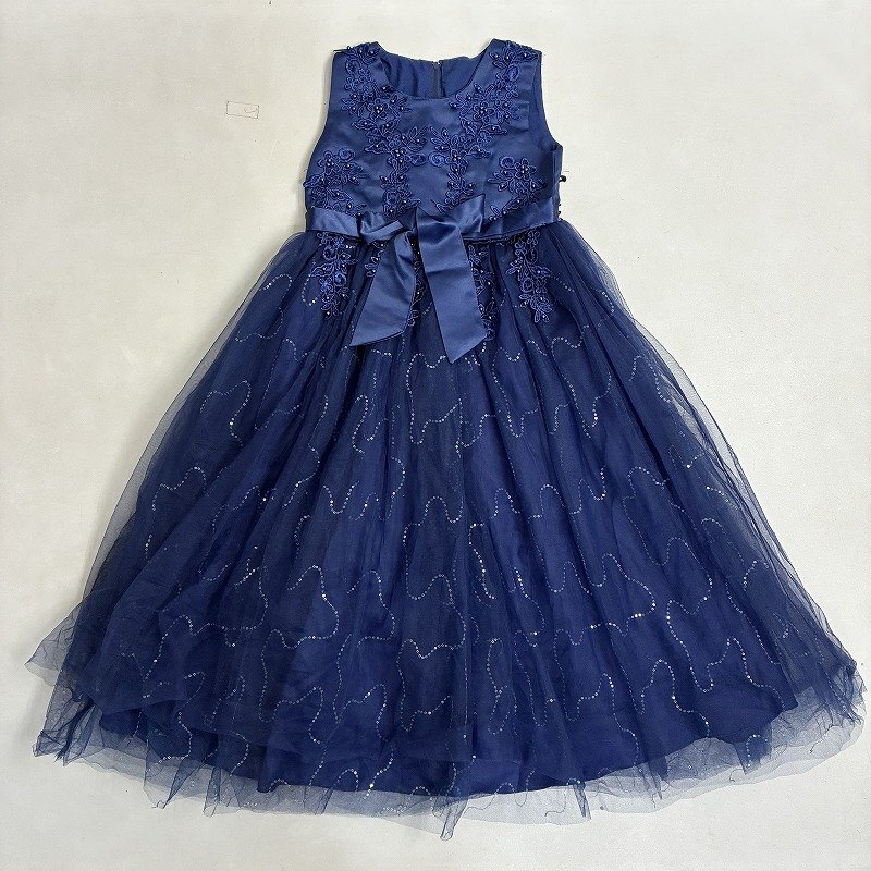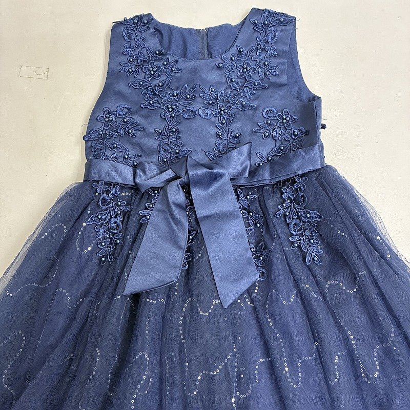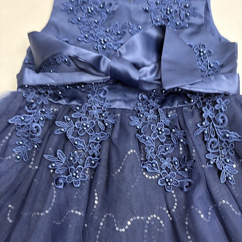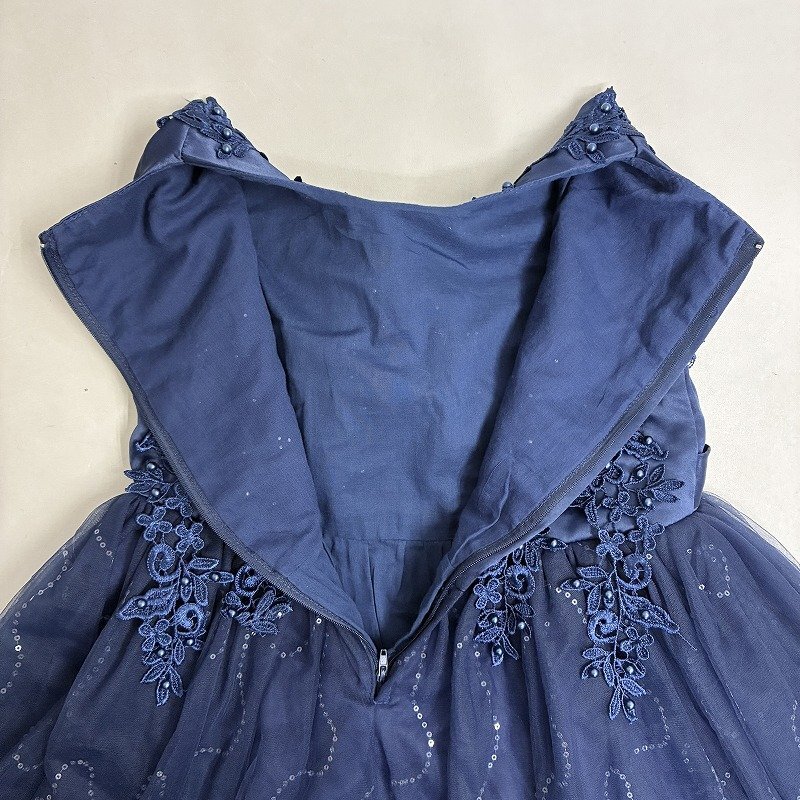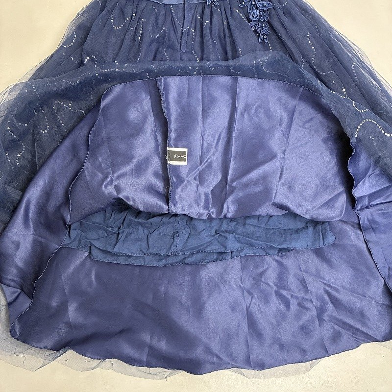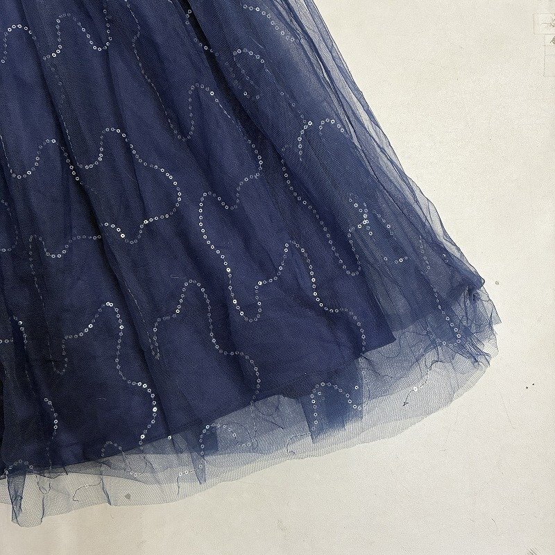 ・商品名◆ AYC LOSET ドレス チュール スパンコール フレア 発表会 リボン 子供服 古着 ネイビー サイズ150㎝ キッズ 0.48kg