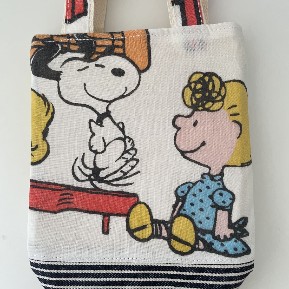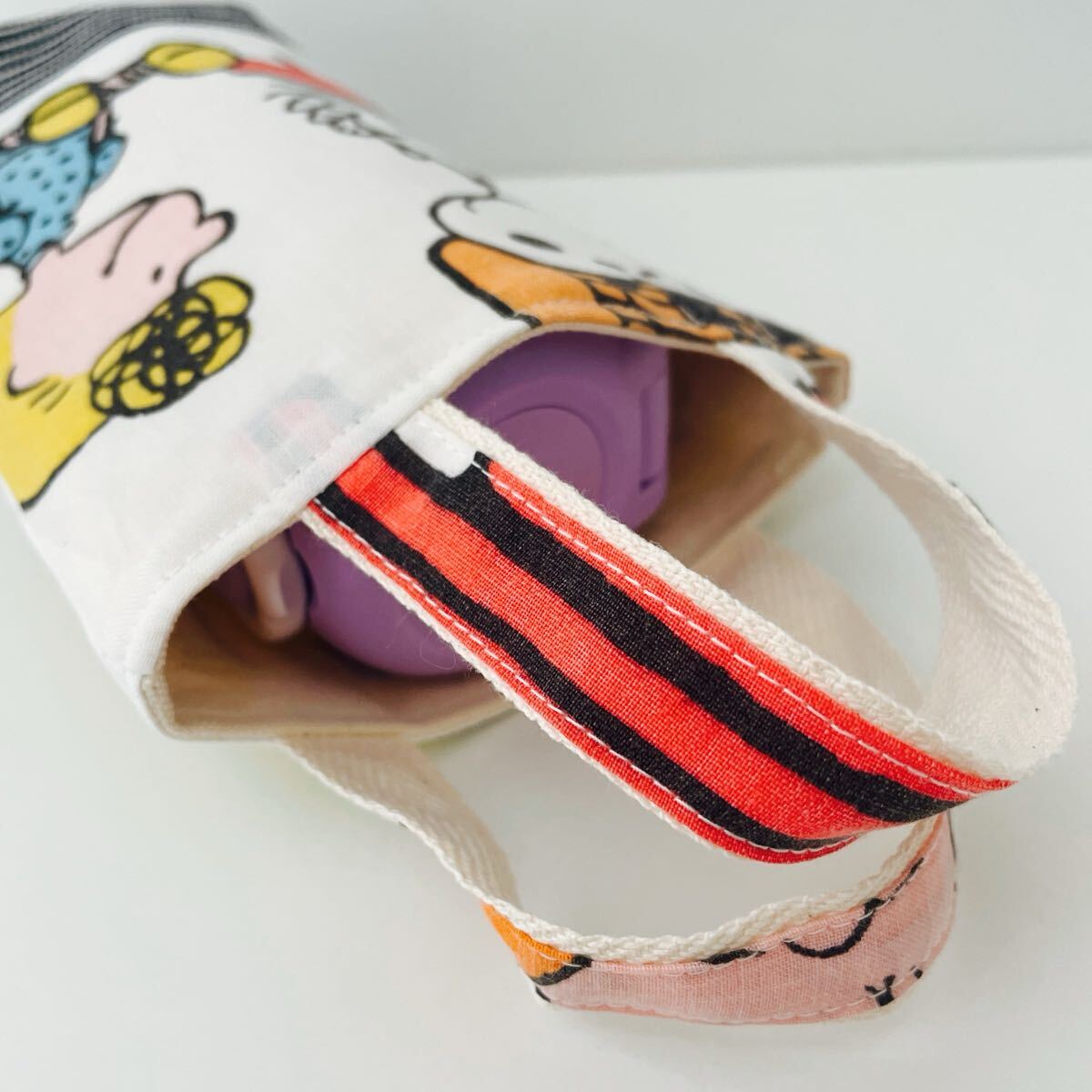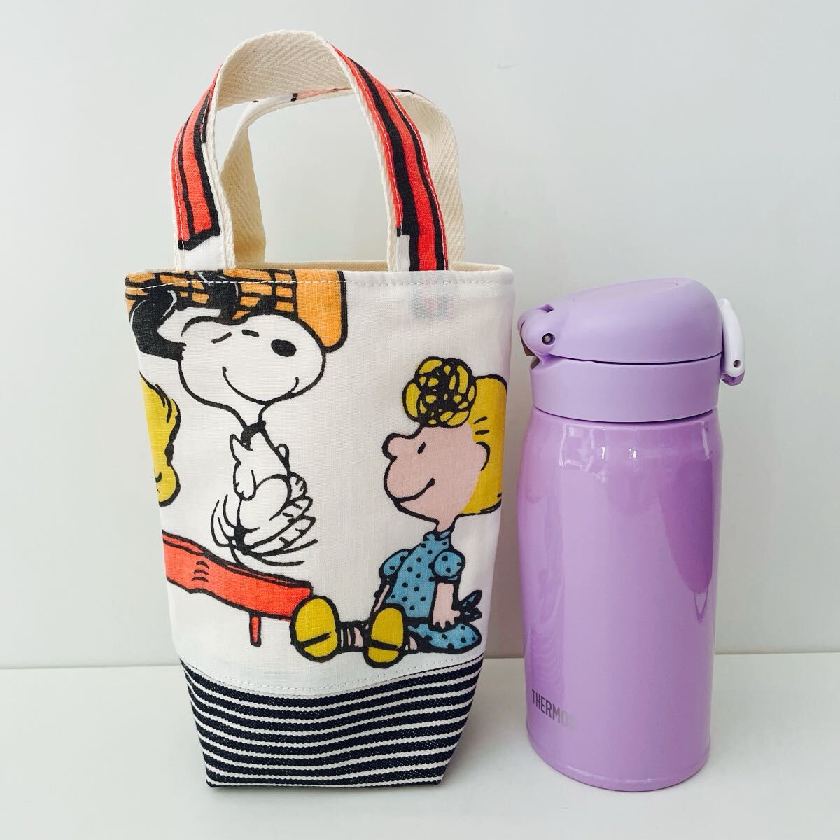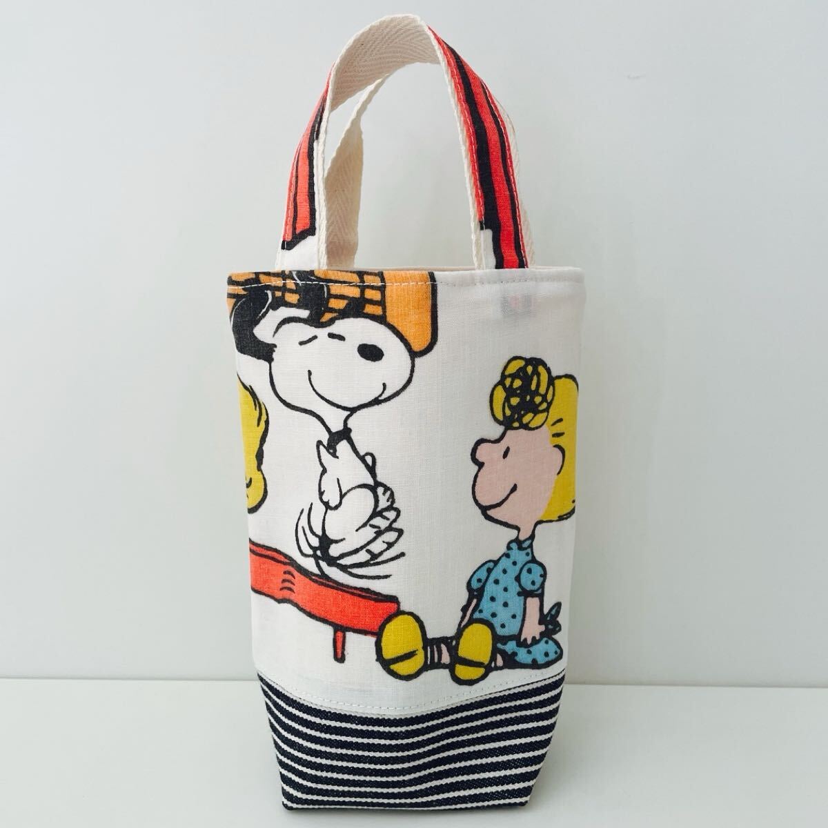 スヌーピーのユーズドシーツをリメイクした水筒トートバッグです。