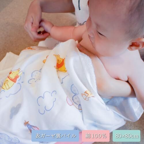 un doudou 湯上りタオル 沐浴バスタオル 2枚組 80×80cm 表ガーゼ 裏パイル Disney プー&フレンズ 身長計付き 綿100% NZ8615(2)