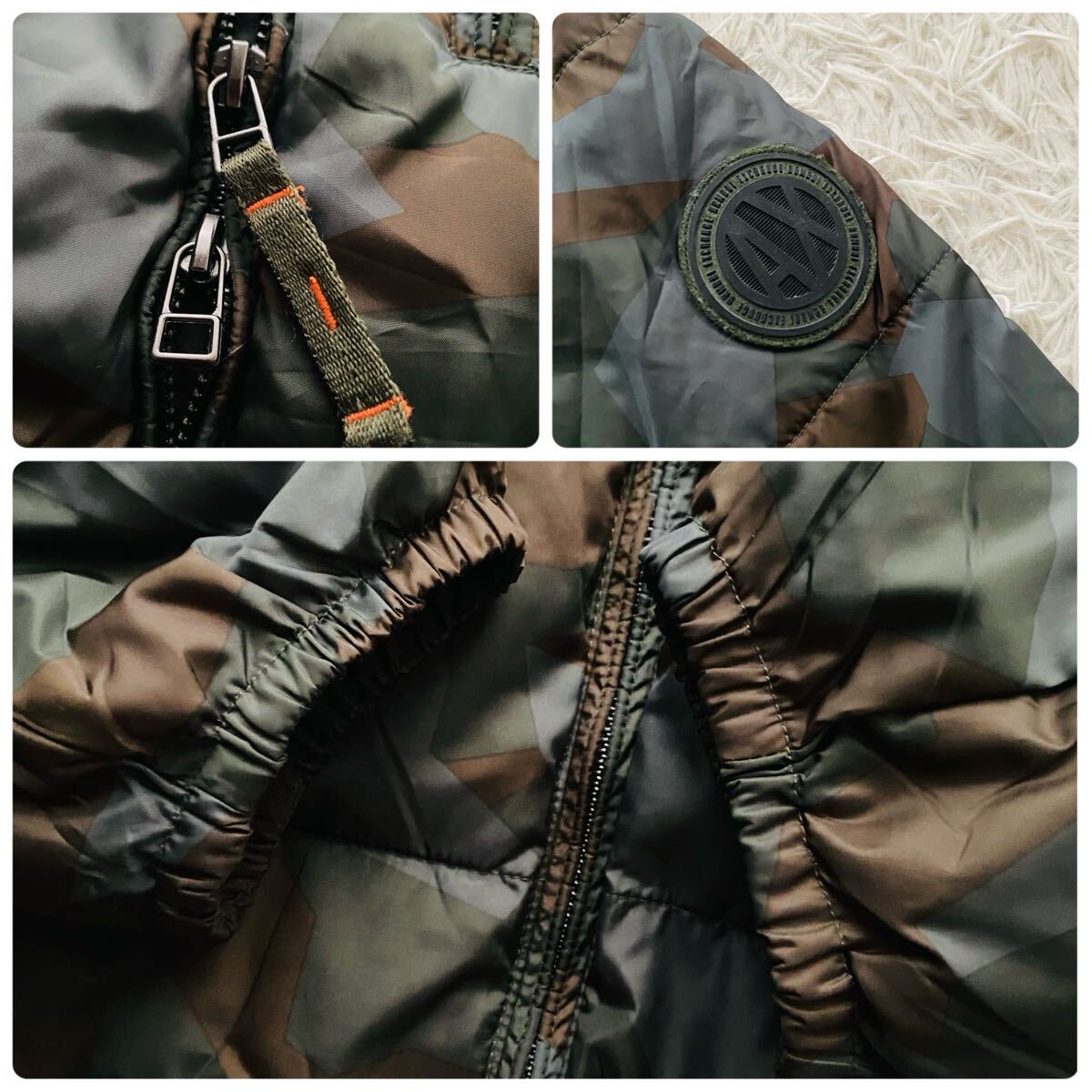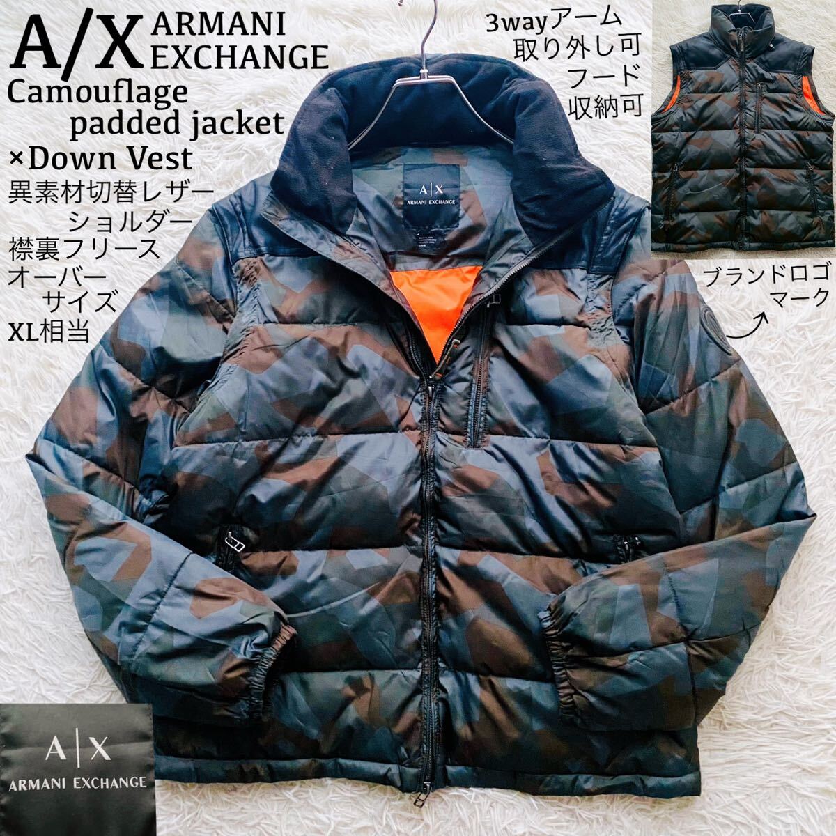*ジョルジオ・アルマーニのスピリットを受け継ぐ革新的でポジティブなARMANI EXCHANGEの人気カモフラモチーフの保温性の高いパデッドジャケット。キルティング加工によりスタイリッシュなシルエットを実現。襟裏にはフリース、肩周りには異素材切り替えレザーを据えたラグジュアリーな仕様が特徴。左アームのブランドロゴマークも◎