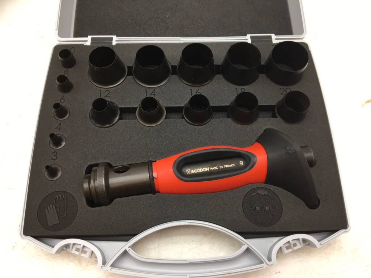 | 機能特徴 | 【仕様】 ・穴抜能力:鉛:1mm ・樹脂、革:2~2.5mm ・高強度工具鋼 ・金属の穴あけには使用できません。 |