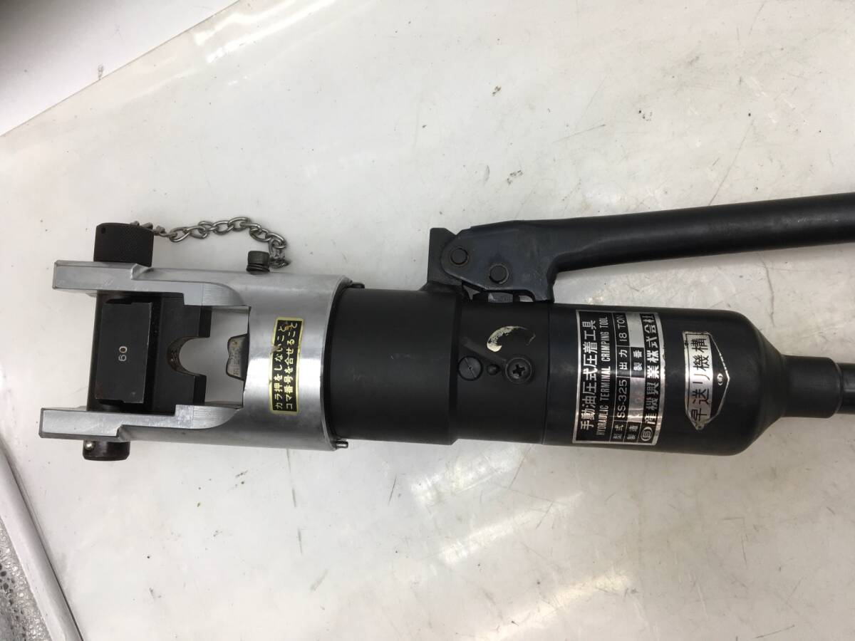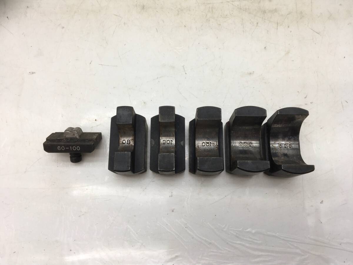 | 機能特徴 | ・圧着範囲 60〜325mm2 ・ダイス標準セット ・押しダイス 60〜100 150〜325(2個) ・受けダイス 60 80 100 150 200 325(6個) ・出力 175KN(18tonf) ・全長 660mm ・質量 6Kg |