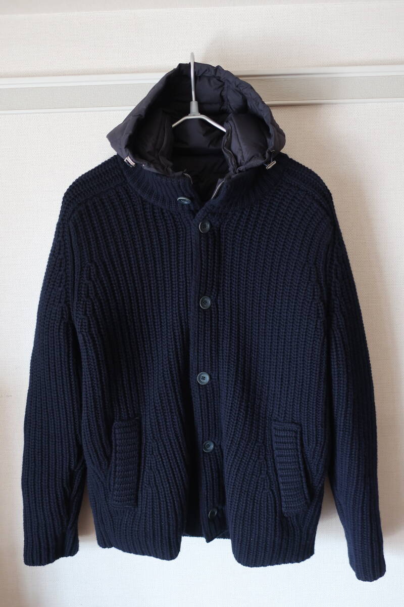 HERNO (ヘルノ)の新品・未使用のイタリア製、ローゲージカシミヤダウンライニングブルゾンです。表情豊かなニットの編み目と、程良いボリューム感が魅力的なニットブルゾンとなります。ダウンインナ―は単品使いもでき、フードの取り外しが可能です。そのため、季節に応じて色々な着こなしが楽しめるアイテムに仕上がっています。素材には、世界中から厳選された高級カシミヤを大胆に使用。上質なアイテムを思う存分に堪能できる一着は、様々なシーンで活躍出来ると思います。色は濃紺色にて、合わせやすいカラーだと思います。サイズは、ヨーロッパサイズ56、日本サイズではXLが該当すると思います。セーターの素材は、表地:カシミヤ100% 裏地 前立て部分 ナイロン100%(ポリウレタンコーティング)、裏地:インナー ナイロン(ポリウレタンコーティング)インナーです。ダウンジャケットの素材は、表地 ナイロン100%(ポリウレタンコーティング)はっ水(水をはじきやすい)中綿 ポリエステル100%となります。ダウンジャケットの実寸は、平置きした状態で、肩幅約50cm、袖約70cm、身幅約52cm、着丈約68cmです。カシミヤセーターの実寸は、平置きした状態で、肩幅約47cm、袖約65cm、身幅約56cm、着丈約71cmです。配送方法については、郵便局のゆうパックのみとなります。他の発送方法は対応致しませんのでくれぐれもご注意ください。洋服については、折り畳んで発送致しますので、シワになる事はご承知おきください。中古品は勿論の事、新品・未使用品でも個人が購入し、保有しているものですので中古品扱いとなります。よって、中古品をご理解頂けない方、神経質な方は入札をご遠慮ください。個人所有の新品、中古品を出品しておりますので、返品・返金等のご対応は出来ません。また、落札後、2日以内にご連絡を頂けない場合や送料をお知らせした後、2日以内にお支払い頂けない場合、キャンセル扱いとさせて頂きます。