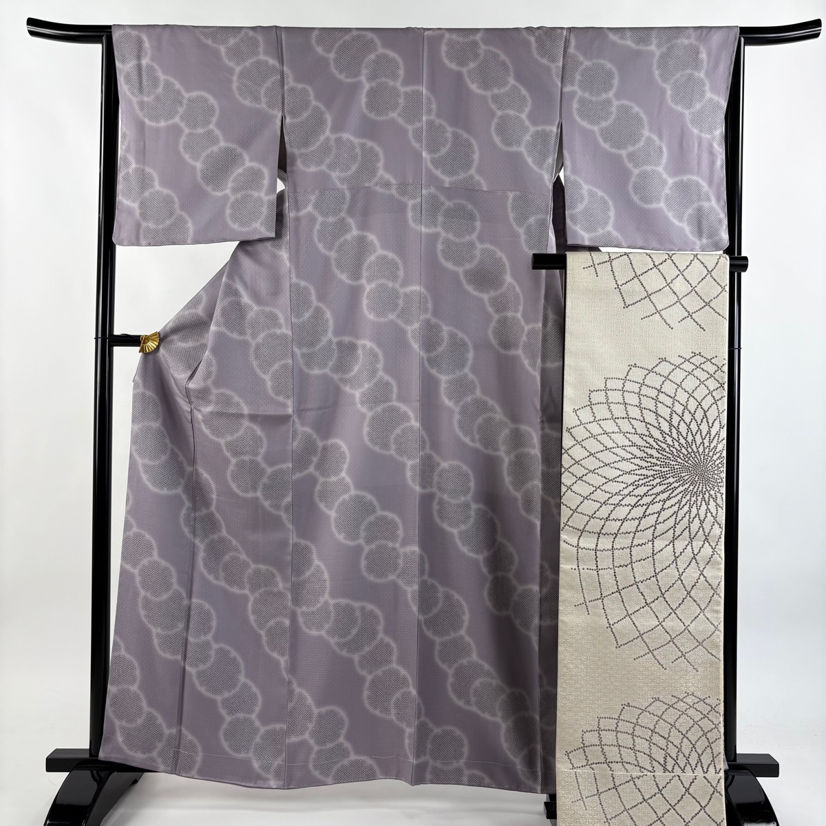 | 小紋 美品 名品 袋帯セット 雪輪 疋田 ぼかし 紫 袷 身丈161.5 裄丈65 M 正絹 【中古】 |