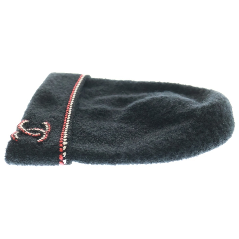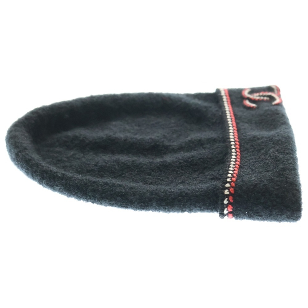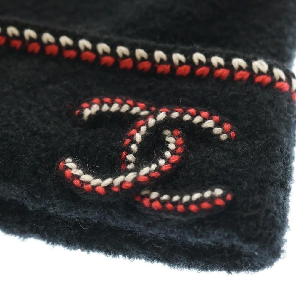 CHANEL シャネル 編込みライン ココマーク カシミア ニットキャップ 帽子 ブラック/レッド レディース