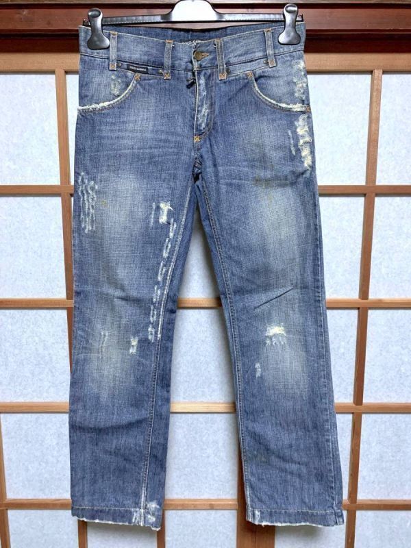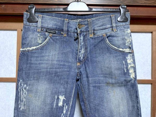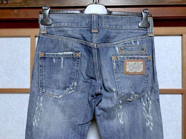 DOLCE&GABBANA プレート付き クラッシュデニム 44