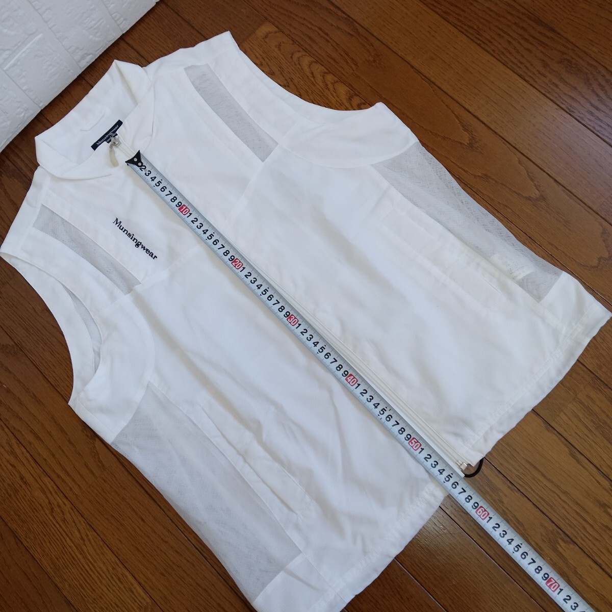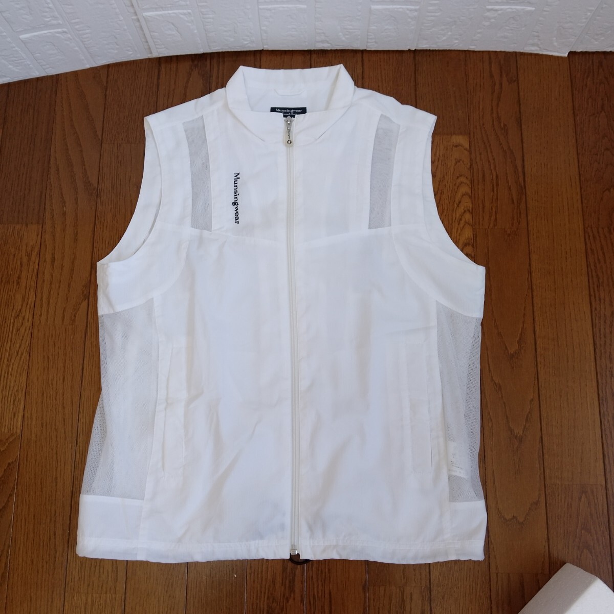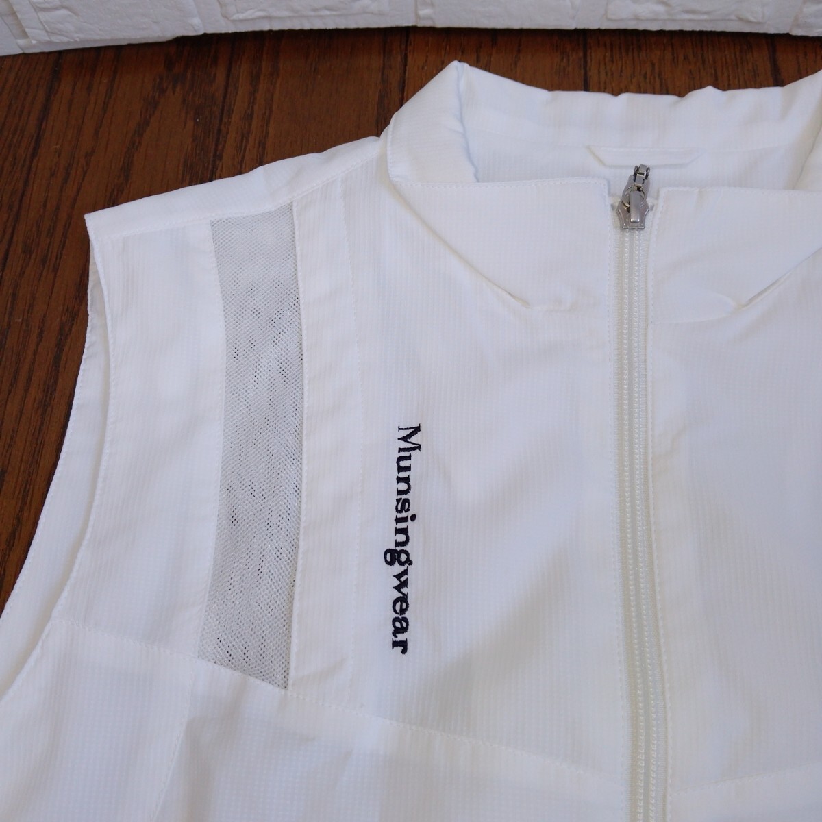 ※Munsing wearメッシュパネル付きのホワイトジッパーベスト、ゴルフに最適。