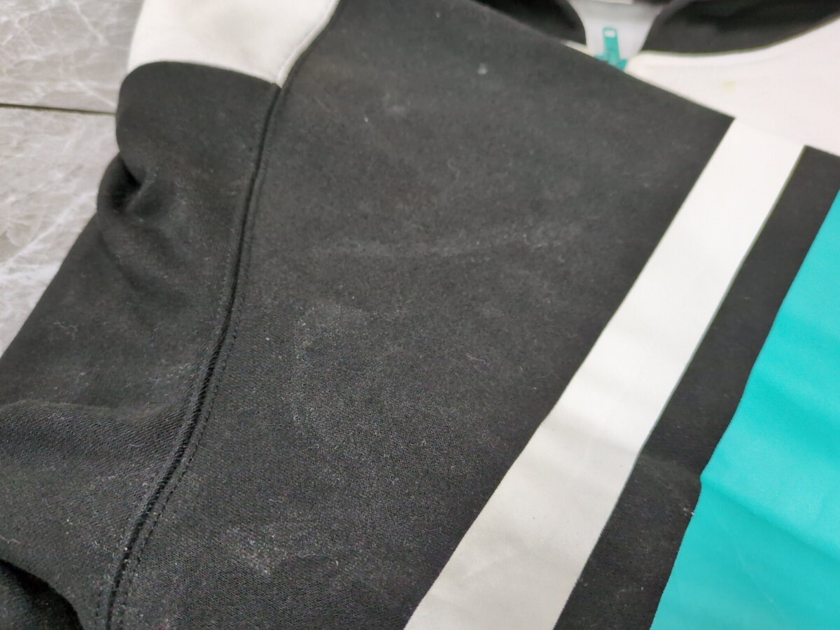 | 黒白蒼緑系。フロント上部や裾や袖に汚れ |