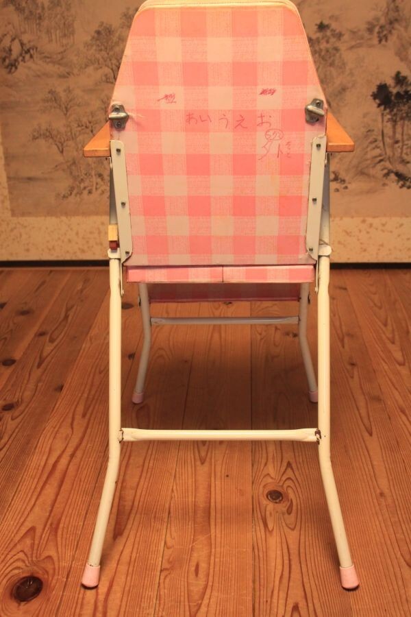 | 古家に保管されていたもので、今回うぶ出しました。 説明書きに、6か月以上5歳未満の子ども対象と書かれています。 自己責任においてご使用ください。中古品のため、当方はあらゆる事故、トラブルの責任を負いません。 格安スタート、売り切りにて出品いたします。 ◎状態:サビ、キズ、落書き、シミ、スレ、汚れ等あります。長期保管されていた古い商品です。その他、写真でご確認ください。 ◎大きさ(約.センチ):W43.5 D58.7 H83.5 座面29.5×26.7 | |||