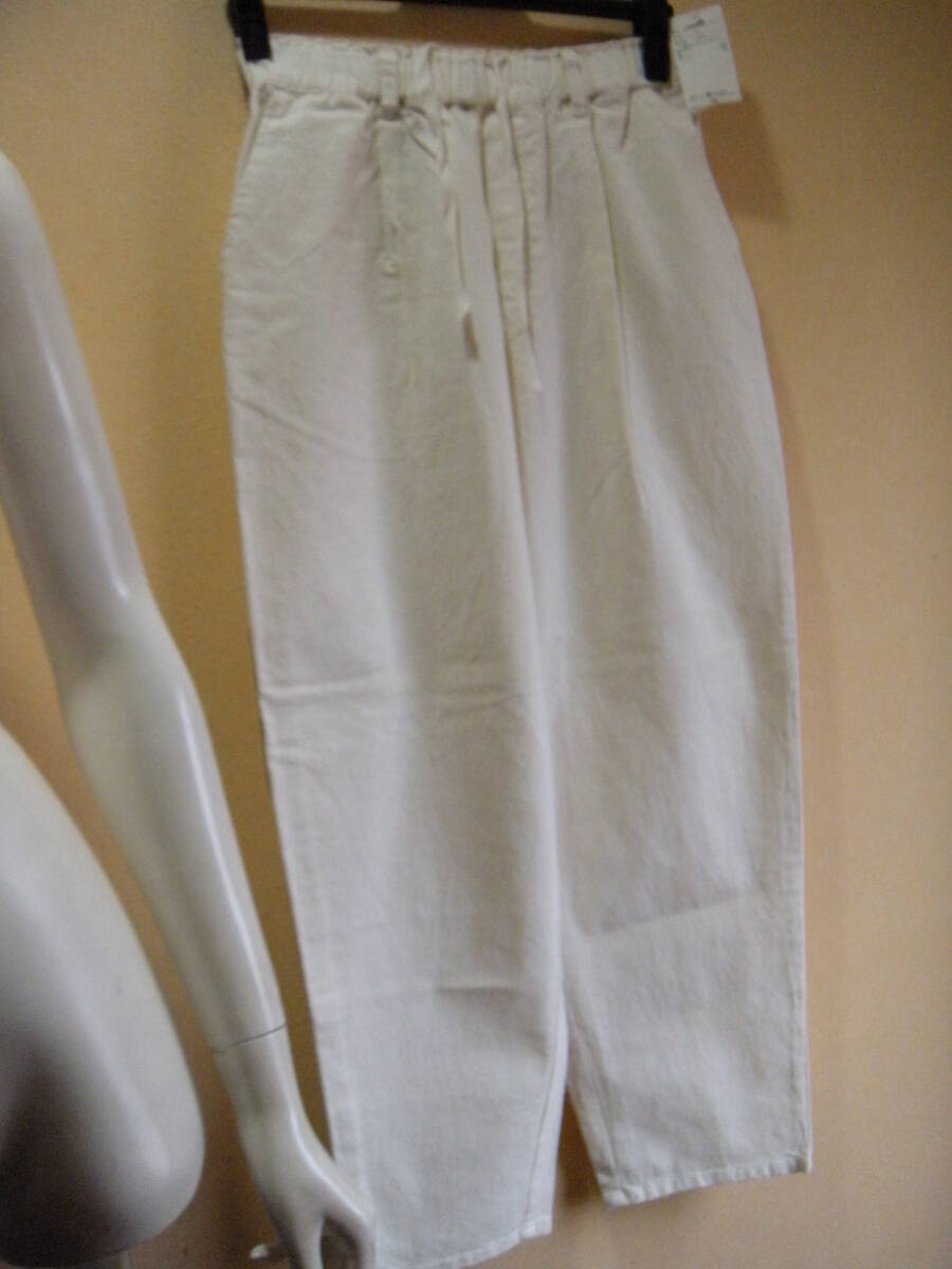 Color(色):画像参照 Size(表記サイズ):画像の表示参照 ウエスト33cm(ゴムと紐入り)、股上35cm、股下58cm、腿幅31cm、裾幅17cm (平置きで計測できる項目のみ記載) Material(素材):画像の表示参照 Condition(状態):新品下げ札付の状態です。 A note(備考):かわいいです。 注)画像の白い丸・点はフラッシュの加減で、汚れなどではございません |