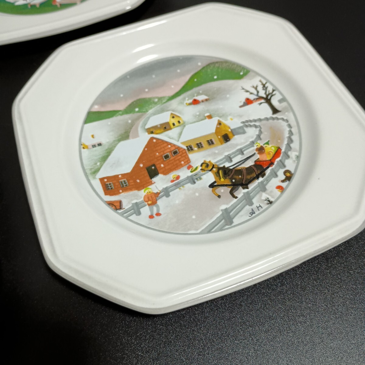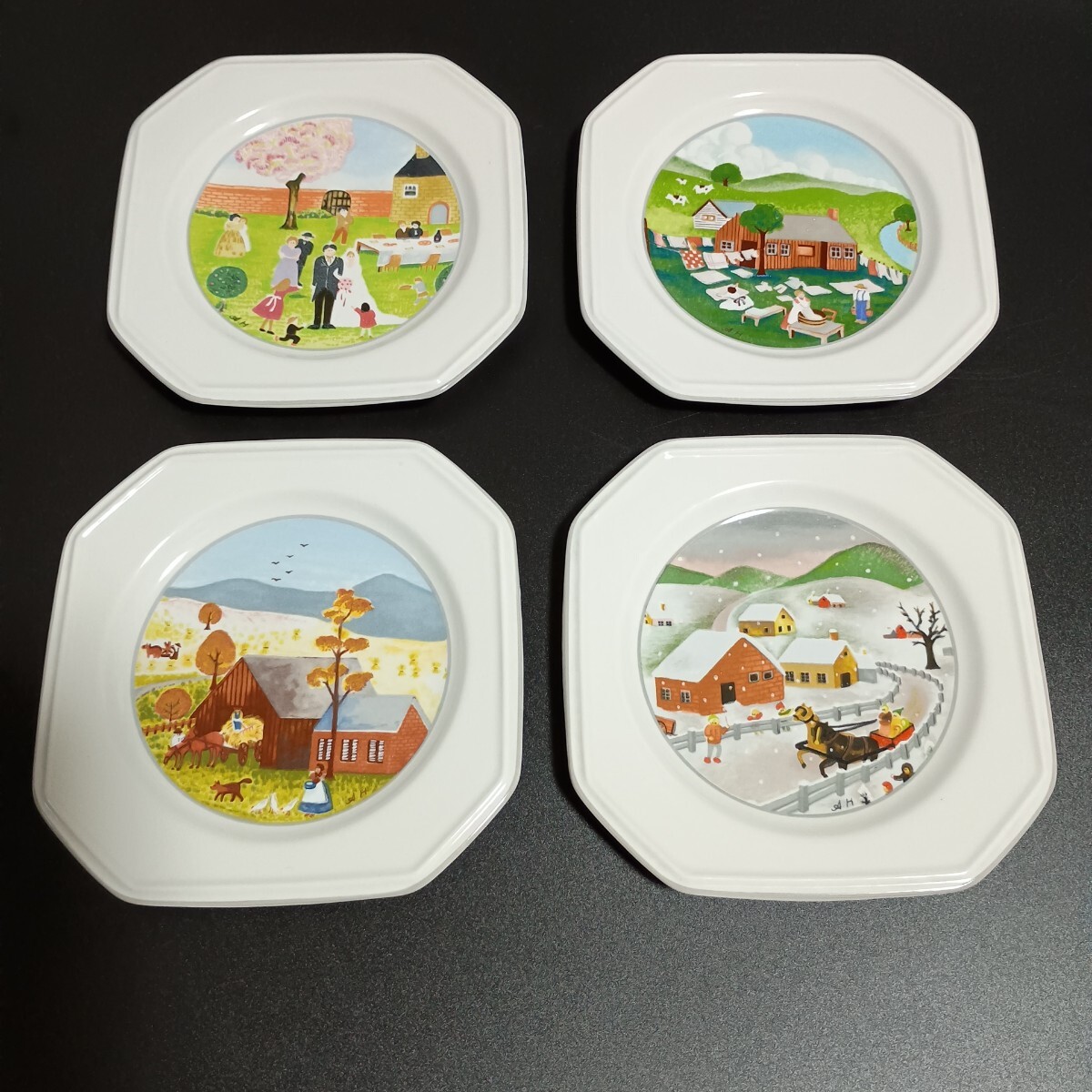 四季の可愛らしい絵柄が描かれた八角形のプレート4枚セットです。