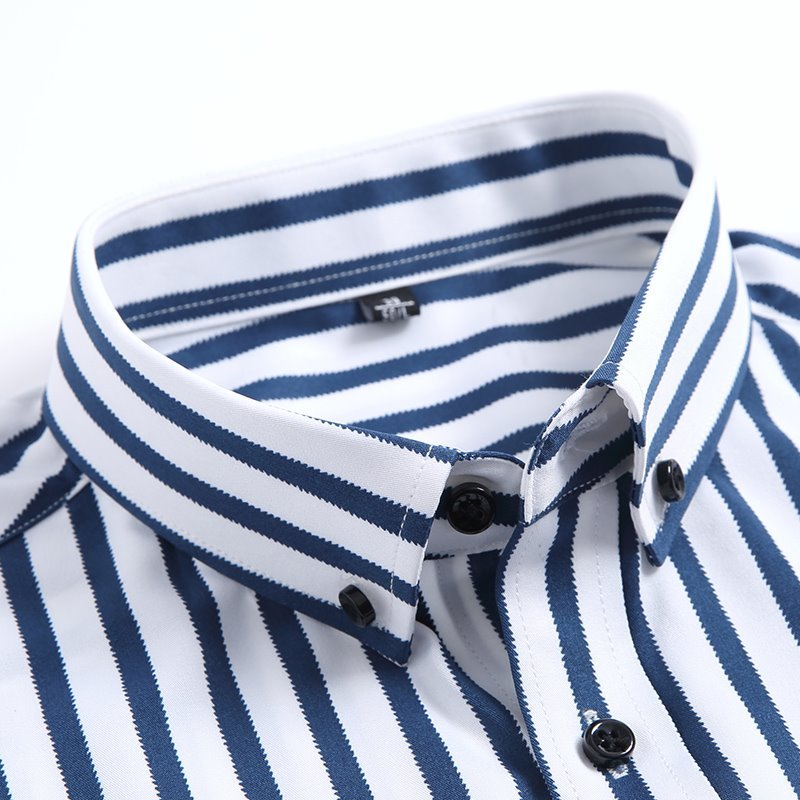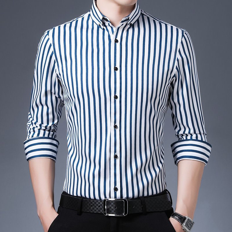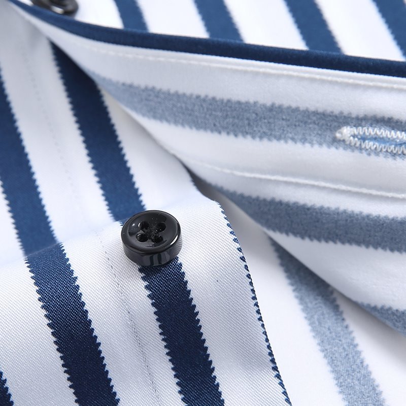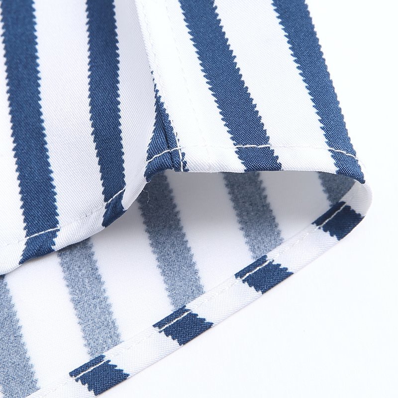 P021-表記5XLブルー 長袖シャツ メンズ 新品DCKMANY ノーアイロン 形態安定 ストライプ ビジネス 縦縞 ワイシャツ シルクのような質感