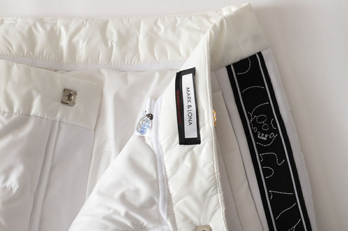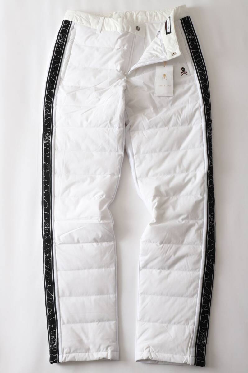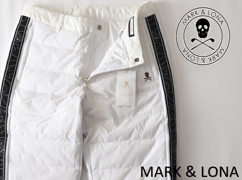 韓国限定★新品未使用 MARK&LONA マーク&ロナ アイアンスカルロゴサイドライン中綿パンツL★48【MTM-1D-AT77】ホワイト白【本物保証】