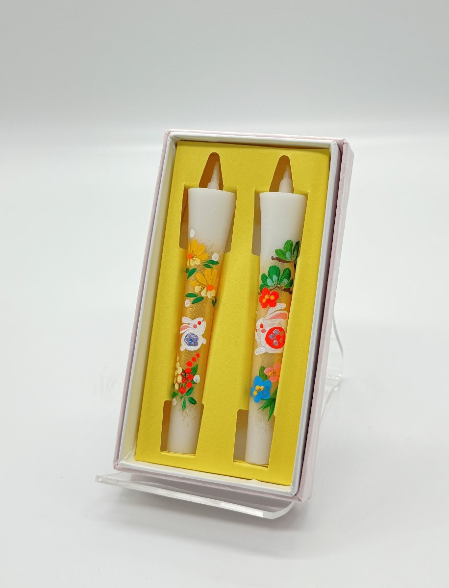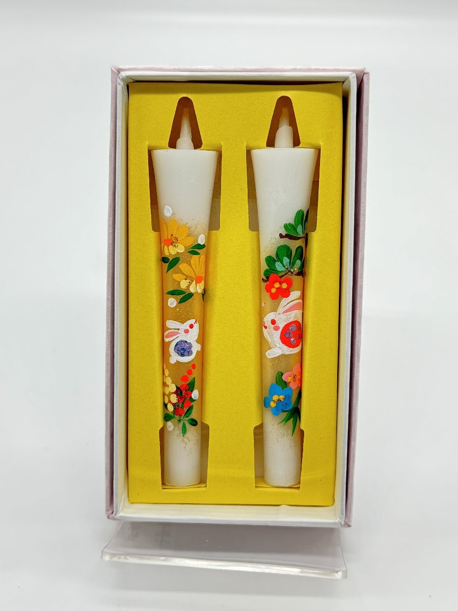 【三枝堂】新品 手書き絵ローソク 「うさぎ」 2本入り 和ローソク(高さ 約10cm)☆送料は当社負担☆