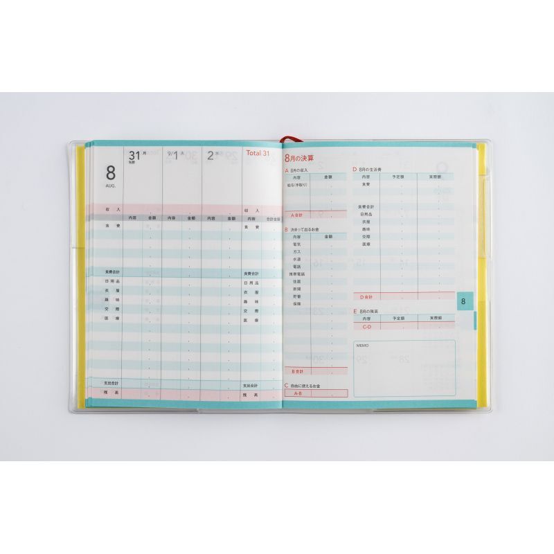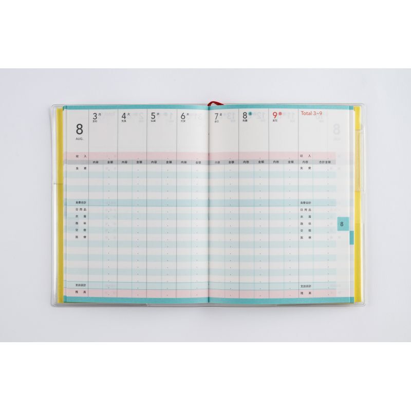 カラフル&かわいい色づかいで、開くたびに気持ちがあがります。コンパクトサイズなので手帳がわりに持ち歩いても◎。1日ごと・週ごとの収支を管理するのに便利な週計タイプです。ペンホルダー付き。