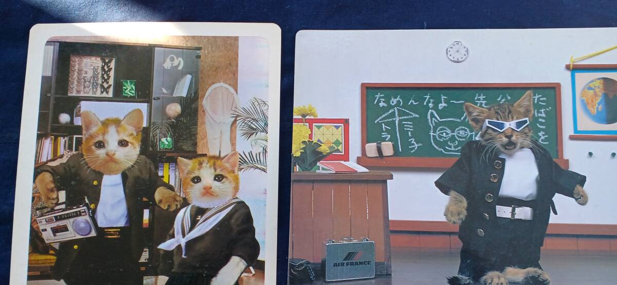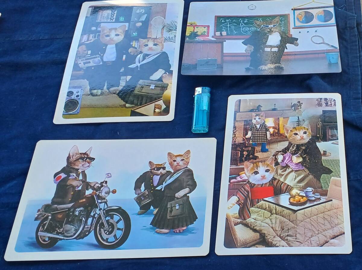 !美品!下敷き(厚紙)「ナメ猫・4枚」182×257ミリ(詳細不明)