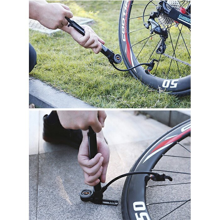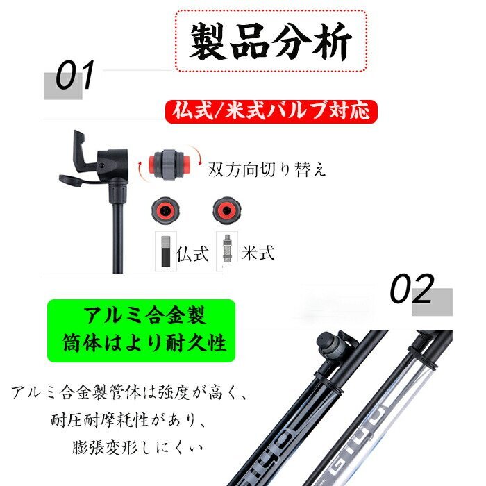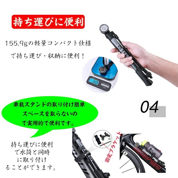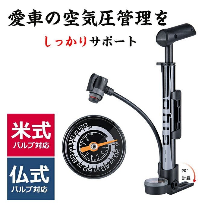 自転車 空気入れ 携帯ポンプ 仏式/米式バルブ対応 大型ゲージ付き 120psi 軽量 ミニフロアポンプ ロードバイク/クロスバイク☆2色選択/1点
