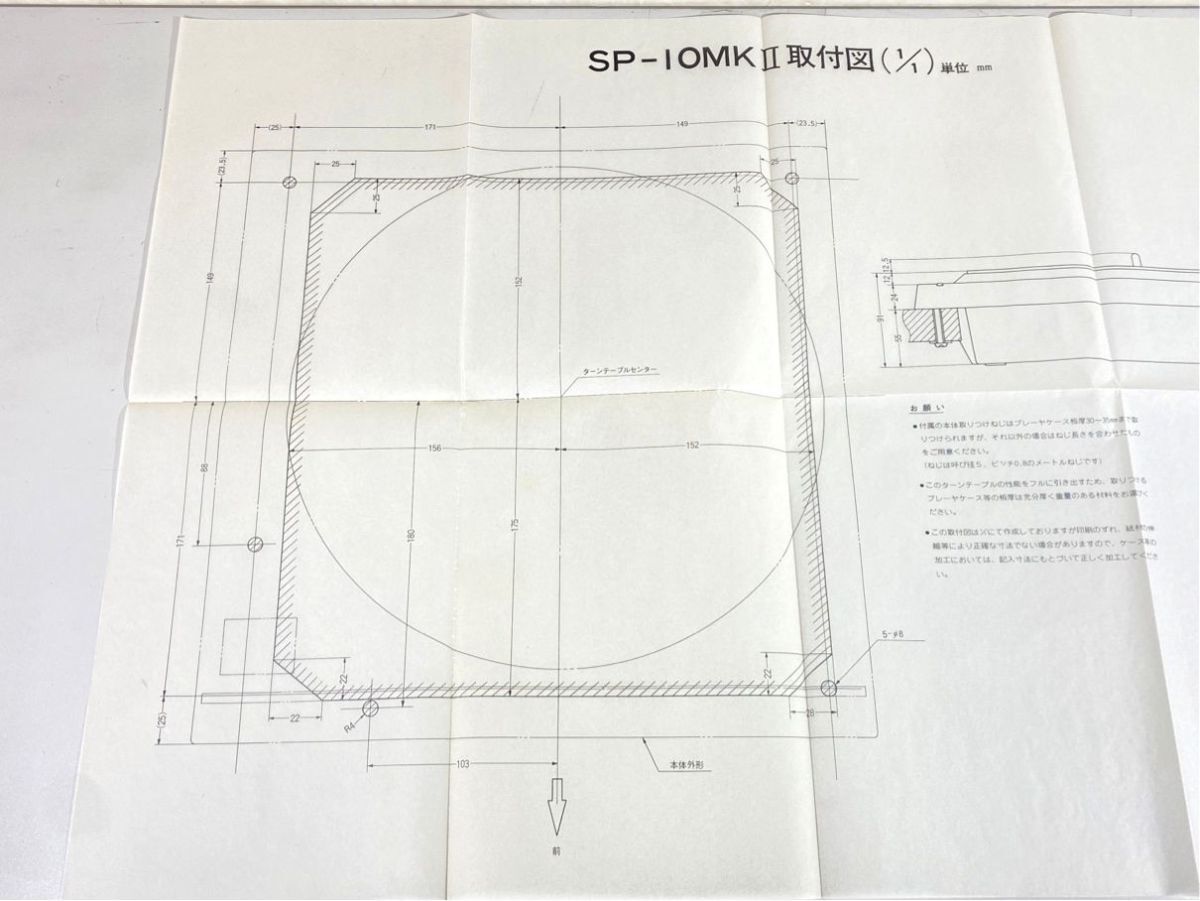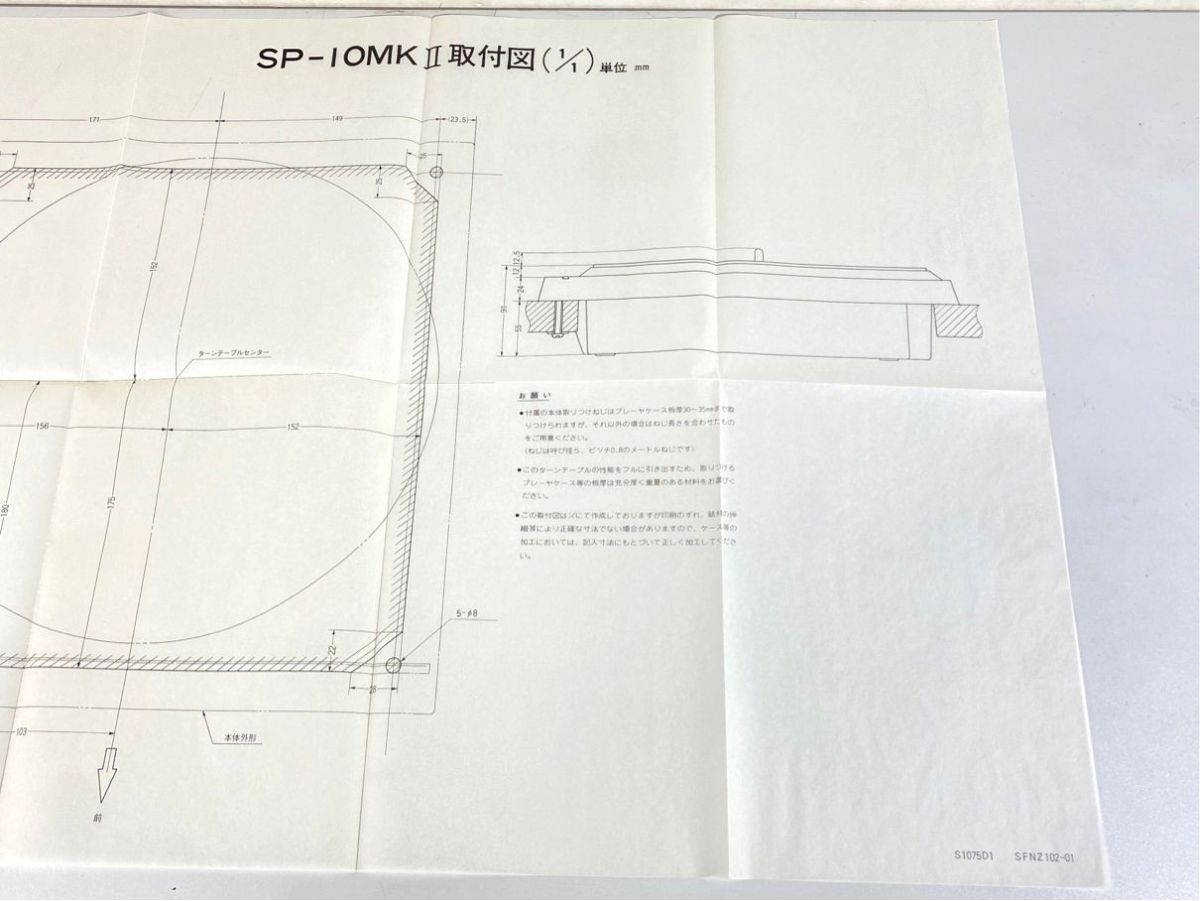 a2518 Technics テクニクス SP-10MK2 SP-10MKII ターンテーブル 用 取付図 テンプレート 原本