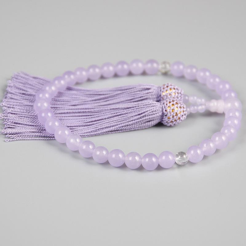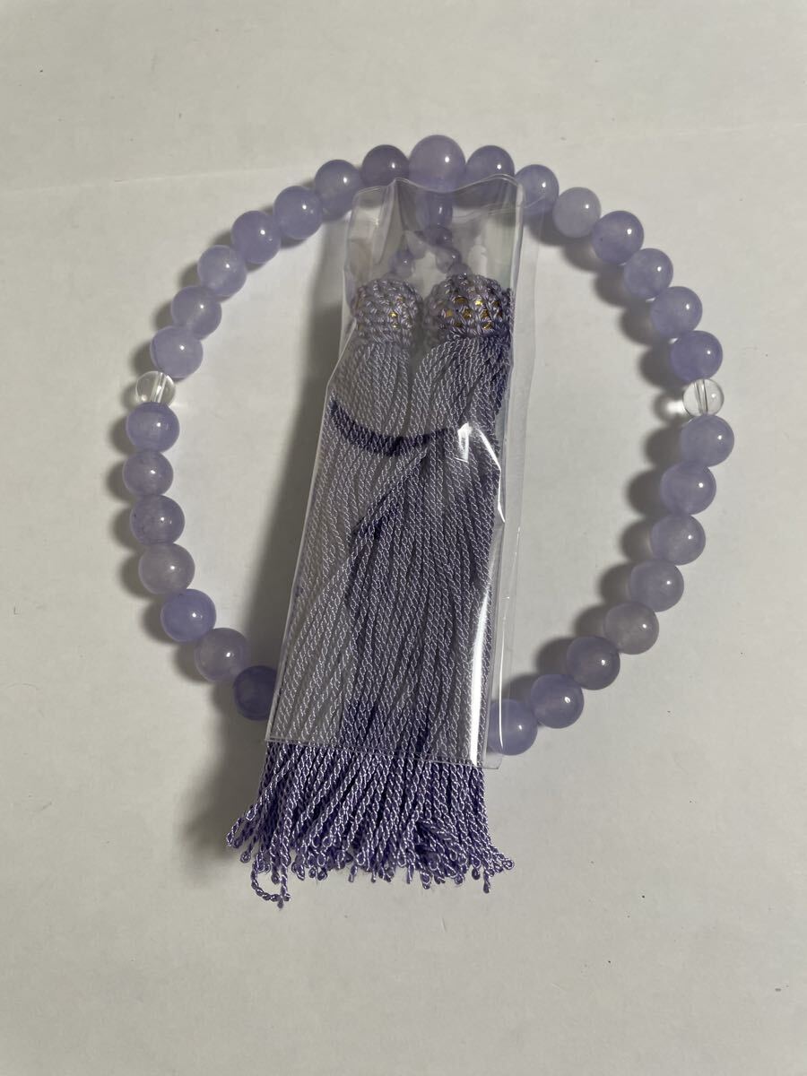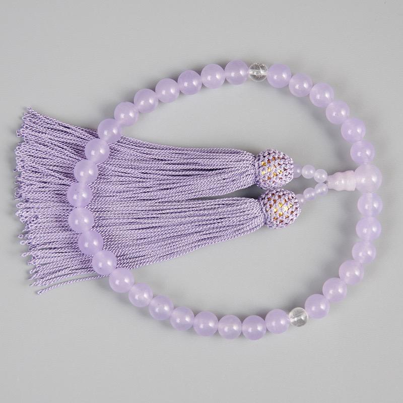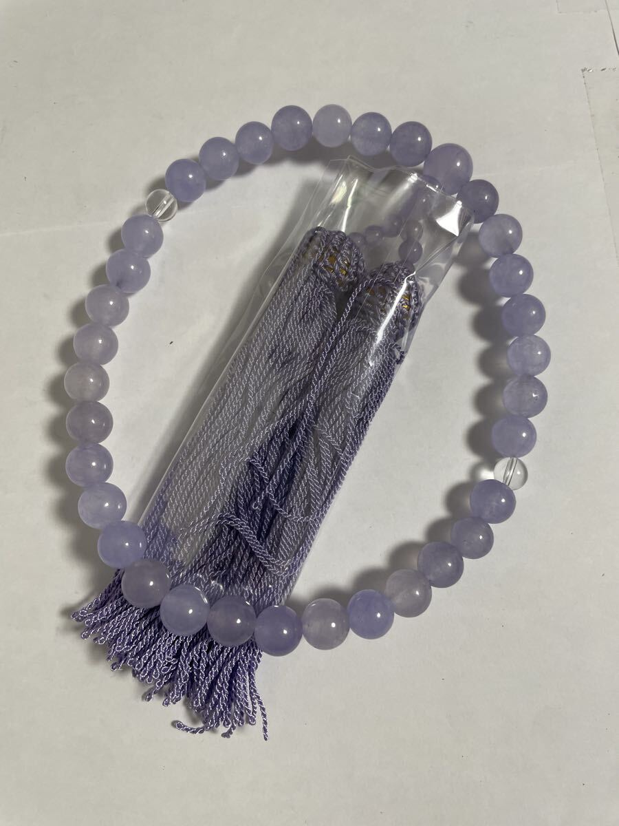 数珠 片手 男女兼用 お数珠   8mm 本水晶 水晶 念珠 天然石 紫 収納袋付き
