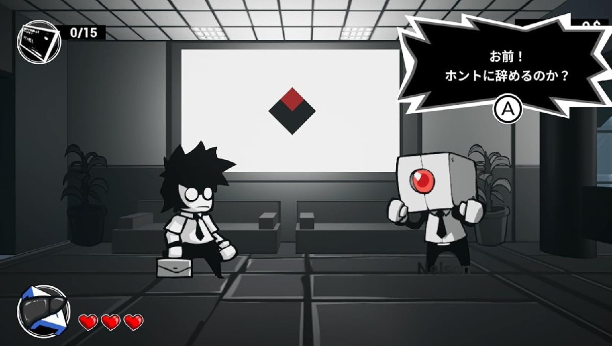 『速攻退職』は、職場を舞台にしたベルトスクロールアクションゲーム。
