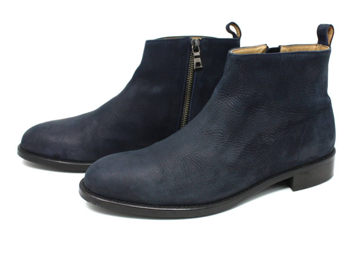 ◆美品 EPOCA UOMO エポカ ヌバックレザー サイドジップ ショートブーツ 40 ネイビー